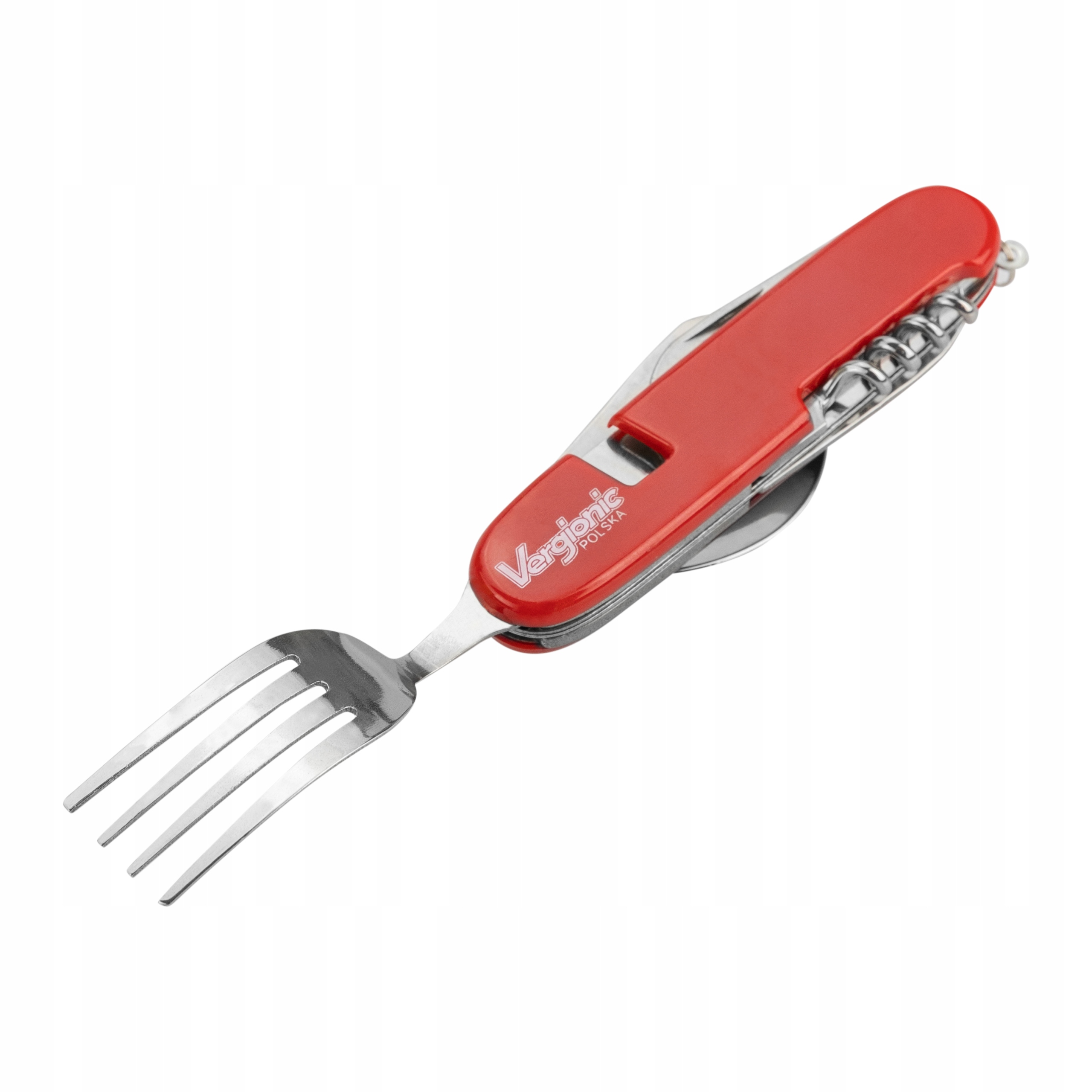 Ящик для інструментів складається з 6 елементів - ніж, виделка, ложка, відкривачка для консервів, відкривачка для пляшок і штопор. Більше того, його зручно від’єднати і одночасно їсти повнорозмірний посуд – ніж з виделкою або ложку з виделкою. Це дозволяє їсти супи, макарони та м’ясні страви.