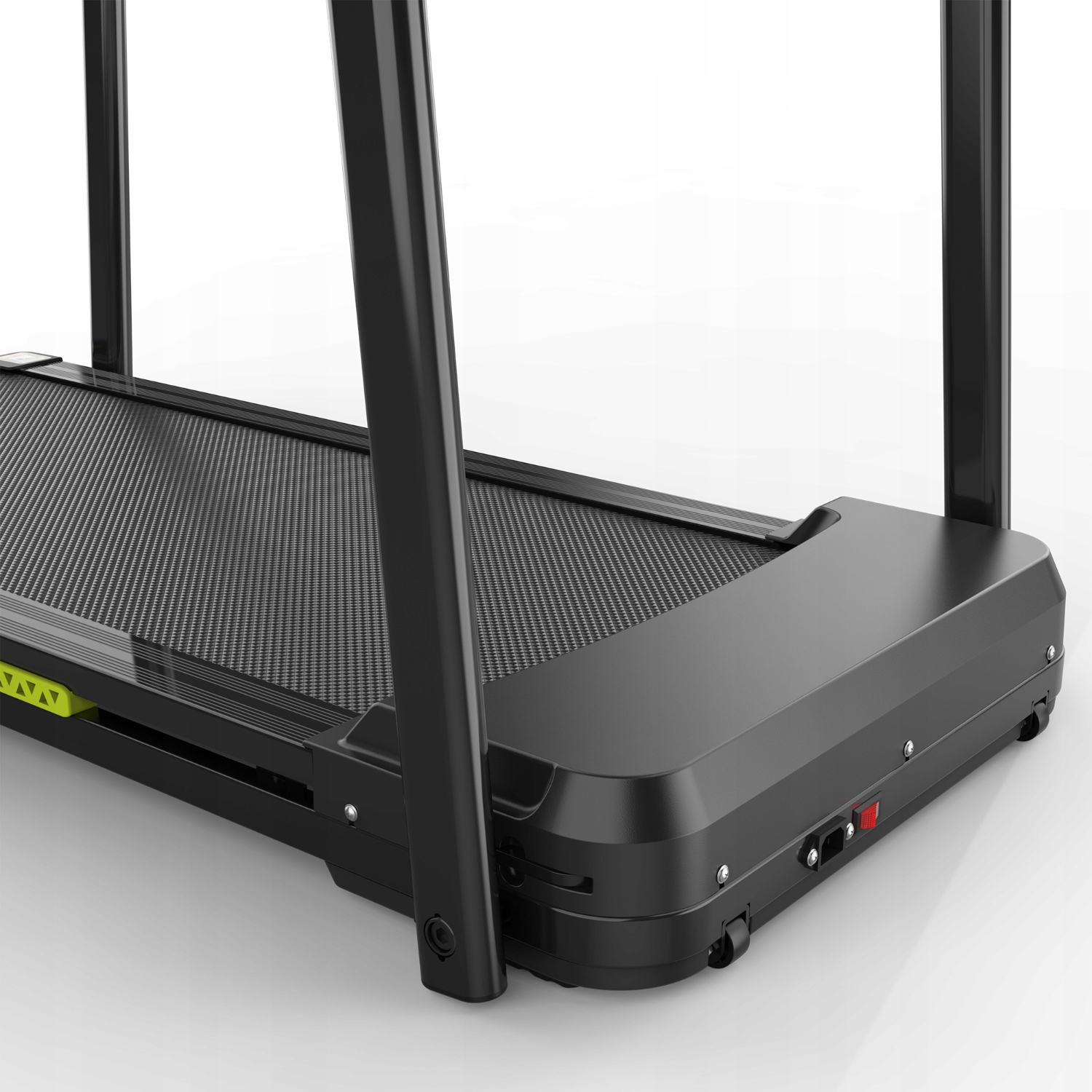 - Поручні цієї складної бігової доріжки знімні. Після того, як їх буде знято, корпус бігової доріжки можна буде підняти та надійно закріпити перед дисплеєм. Складана конструкція дозволяє легко транспортувати та зберігати бігову доріжку. Крім того, бігова доріжка оснащена передніми колесами, тож навіть люди похилого віку можуть легко перенести її в будь-яке місце та самостійно керувати нею.