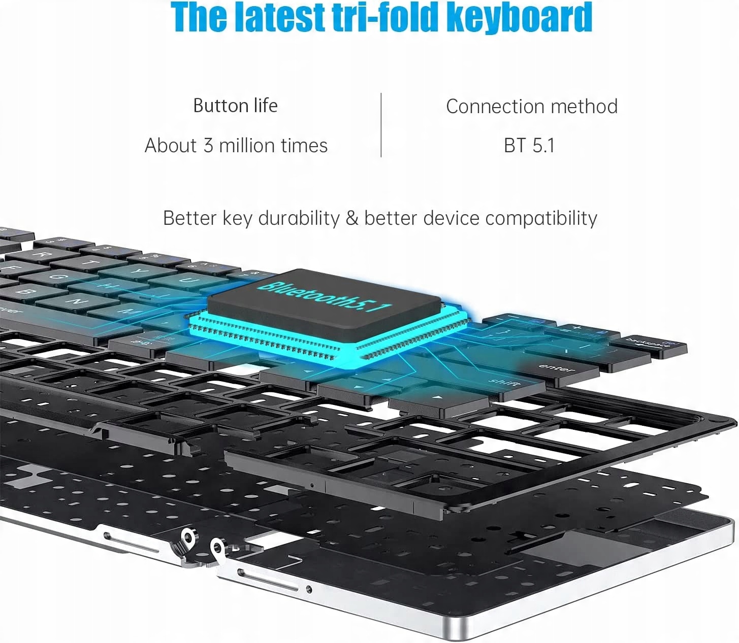 ✅ Складна Bluetooth-клавіатура з цифровою клавіатурою - Ергономічна, складна міні-клавіатура Bluetooth у форматі 81 клавіші з цифровою клавіатурою. Портативна Bluetooth-клавіатура має матовий дизайн, який забезпечує приємне відчуття. Забезпечує плавне та тактильне введення.
