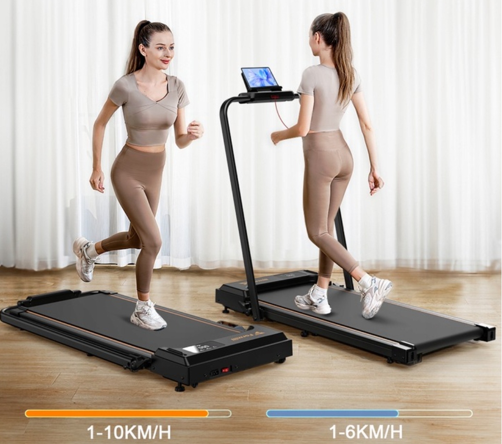 ➡ СКЛАДНА ЕЛЕКТРИЧНА БІГОВА ДОРІЖКА JUICEASE T5860, призначена для домашнього використання, розміщується під ліжком або столом, має швидкість 1-10 км/год, вихідну потужність 0,75-2,5 к. с., максимальне навантаження 120 кг, світлодіодний дисплей.