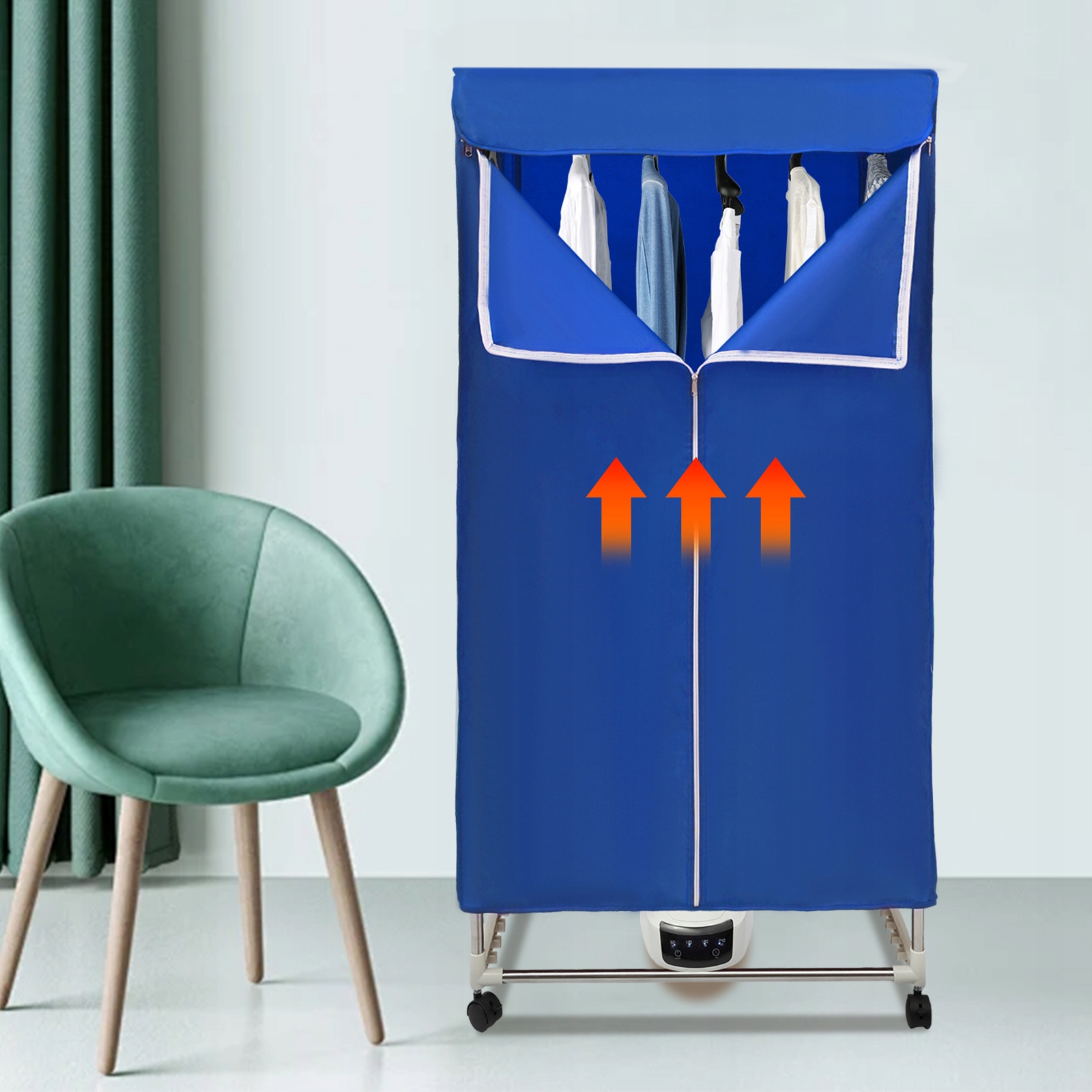 - Продуманий дизайн: Ви можете встановити час сушіння (60/120/180/240 хв) відповідно до різного одягу без необхідності постійно залишатися. Універсальні колеса (два з них мають гальма) спрощують переміщення та ремонт виробу.