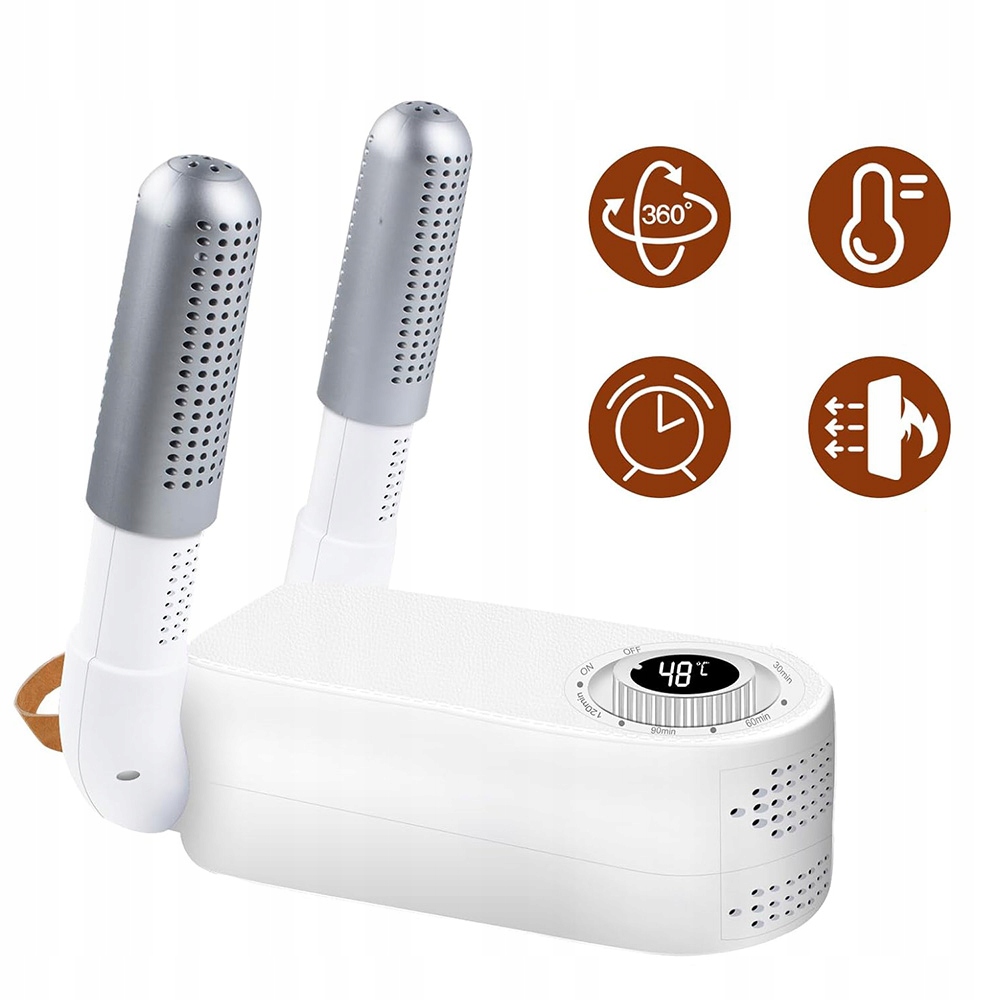 Налаштуйте час сушіння відповідно до рівня вологості та матеріалу взуття: 30/60/90/120 хвилин. Пристрій автоматично вимикається через встановлений час - економить енергію та забезпечує безпечне використання.