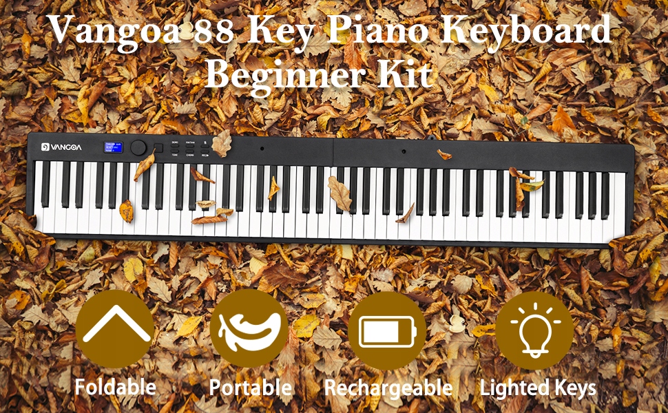 СКЛАДНА КЛАВІАТУРА Vangoa 88 повнорозмірних клавіш BT з підсвічуванням