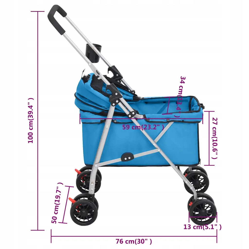 Складна коляска для собак синього кольору 76 х 50 х 100 см