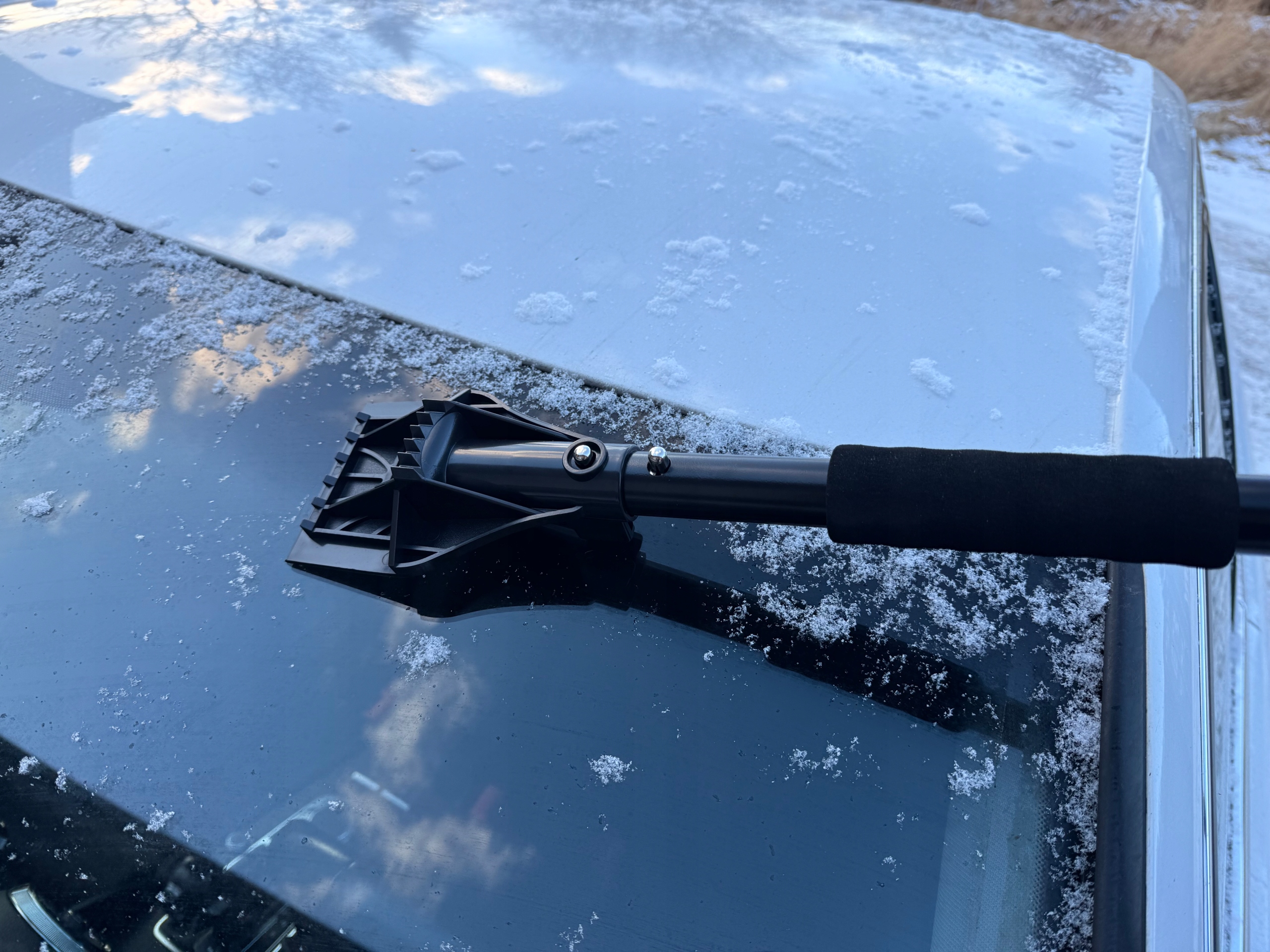 Один інструмент, який виконує роботу за три: змітає сніг, зішкрябує лід і викопує машину. швидко Комфортно. Жодних хитрощів.