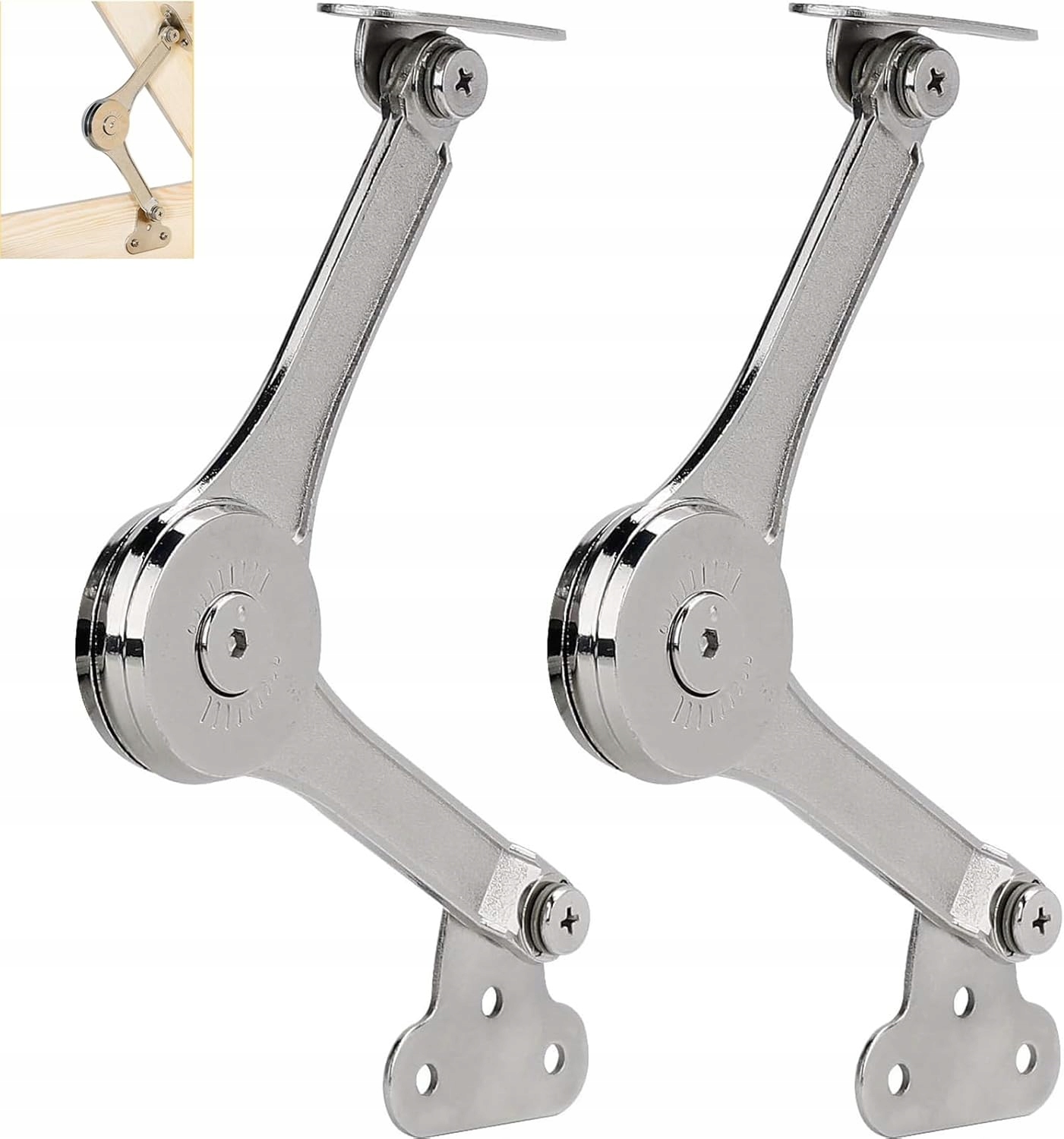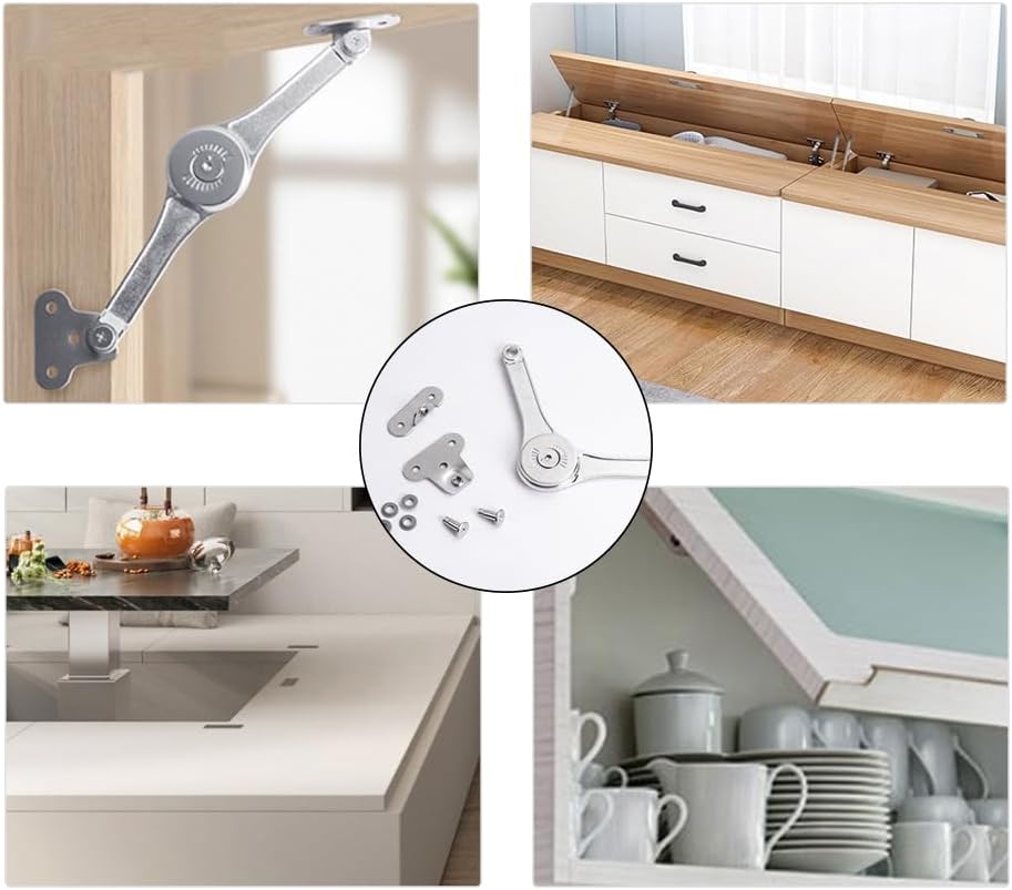 🌺🌺 Універсальне використання: опорні петлі підходять для шаф, дерев’яних ящиків, чарівних ящиків, вікон, розкладних ліжок, роздягалень, ящиків для інструментів тощо. Вони дозволяють підняти дверцята шафи вгору і утримувати їх у цьому положенні до опускання вручну. Сумісний із більшістю шаф або меблів для зберігання.