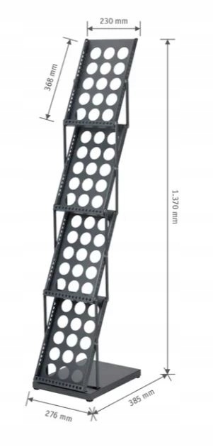 Стенд для брошур Puznar II - це естетичний і зручний носій інформації. Конструкція дуже швидко розбирається і в складеному вигляді займає мало місця. Його також легко носити з сумкою. Він оснащений 6 контейнерами для листівок - його можна використовувати з обох сторін.