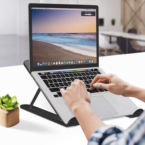 ✔️ Дозволяє піднімати пристрій під різними кутами, що перекл. у покращену ергономіку та підтримку здорового робочого положення