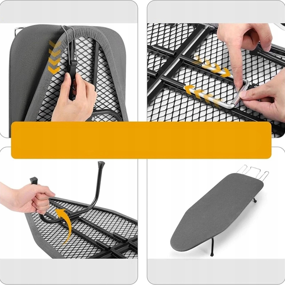 Стабільна та практична: ця надзвичайно стабільна, високоякісна міні-прасувальна дошка оснащена ніжками з поліпропілену, які запобігають ковзанню під час використання та захищають підлогу від подряпин.