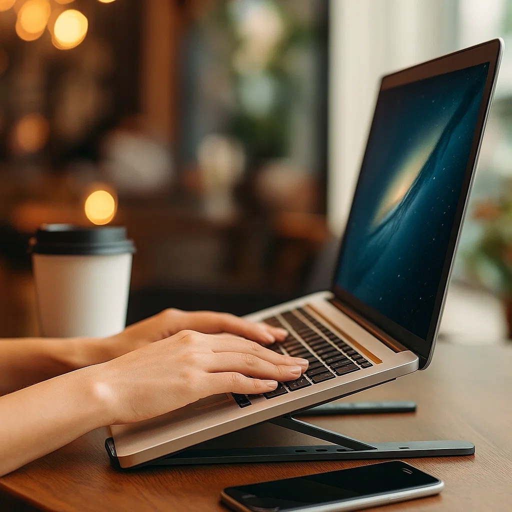 - Компактний і складаний: підставку можна скласти, що полегшує її зберігання та транспортування. Це ідеальне рішення для людей, які працюють у різних місцях і цінують мобільність своїх аксесуарів.