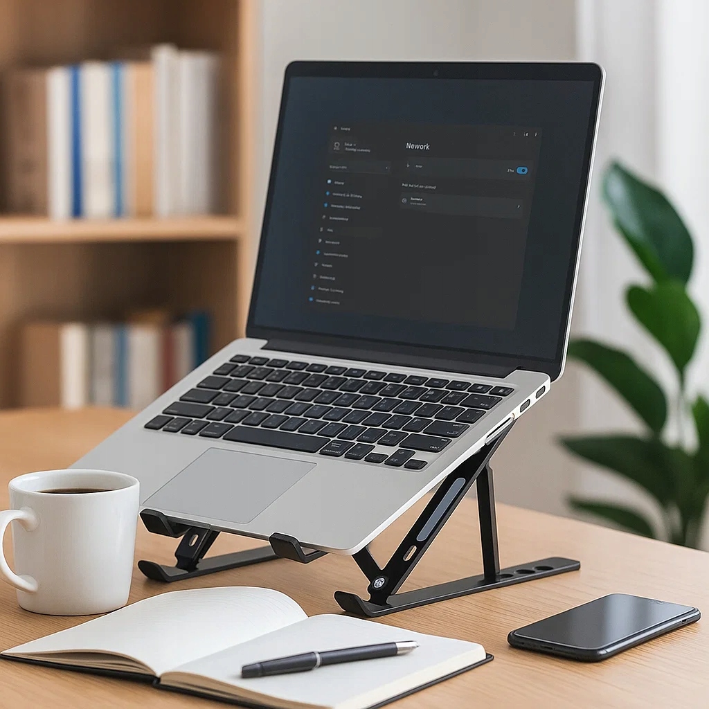 - Захист від перегріву: Відкрита конструкція підставки покращує циркуляцію повітря, що запобігає перегріванню ноутбука під час тривалого використання.
