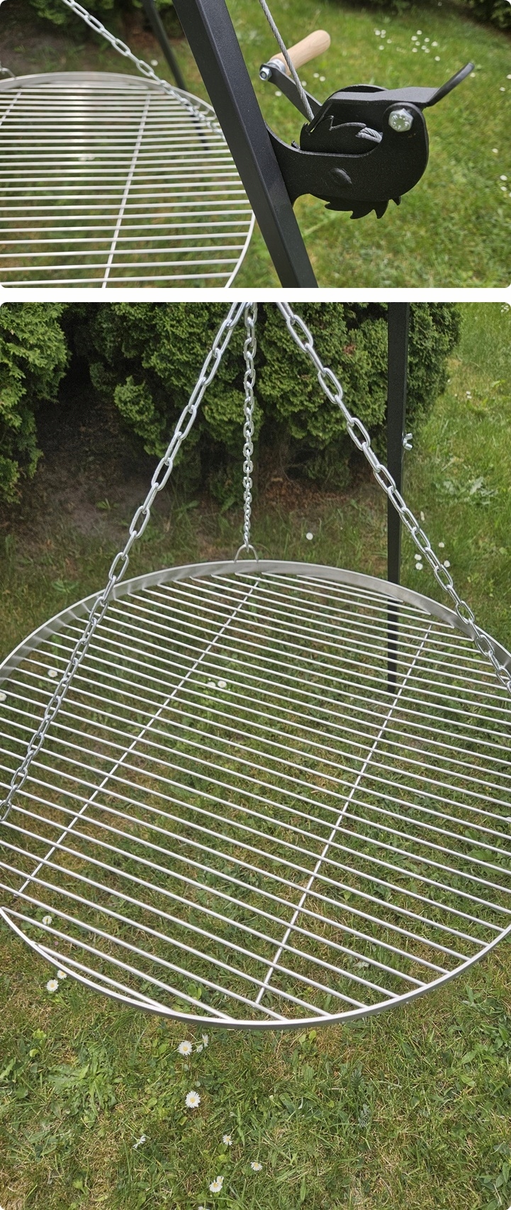 Натхмуйте діаметром 70 см , виготовленим з високоякісної нержавіючої сталі. Завдяки великому розміру решітки ви можете гриль для багатьох гостей у