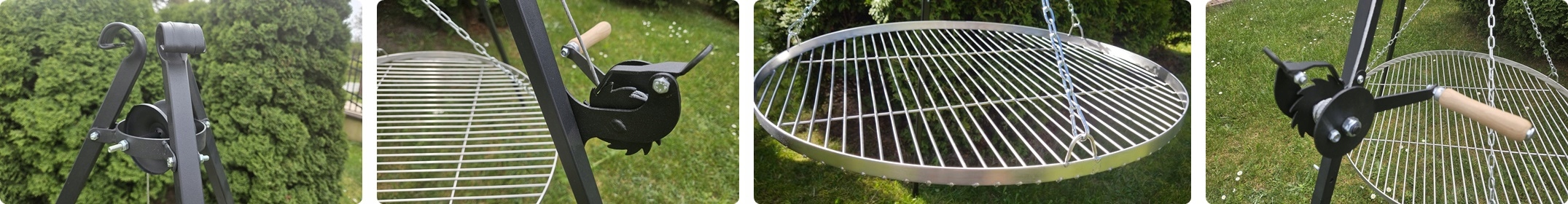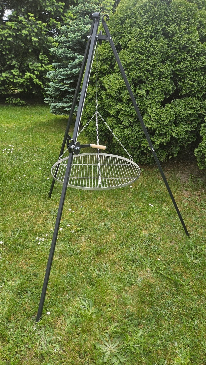 - Практичність - Тріо можна розмістити в будь -якій точці поля, і прокладена поверхня. Завдяки використанню гвинтів -метеликів та складних ног, штатив простий у складанні та розбираннях, а також на зберігання. Це дозволяє повного контролю над процесом грилю. і на терасі.