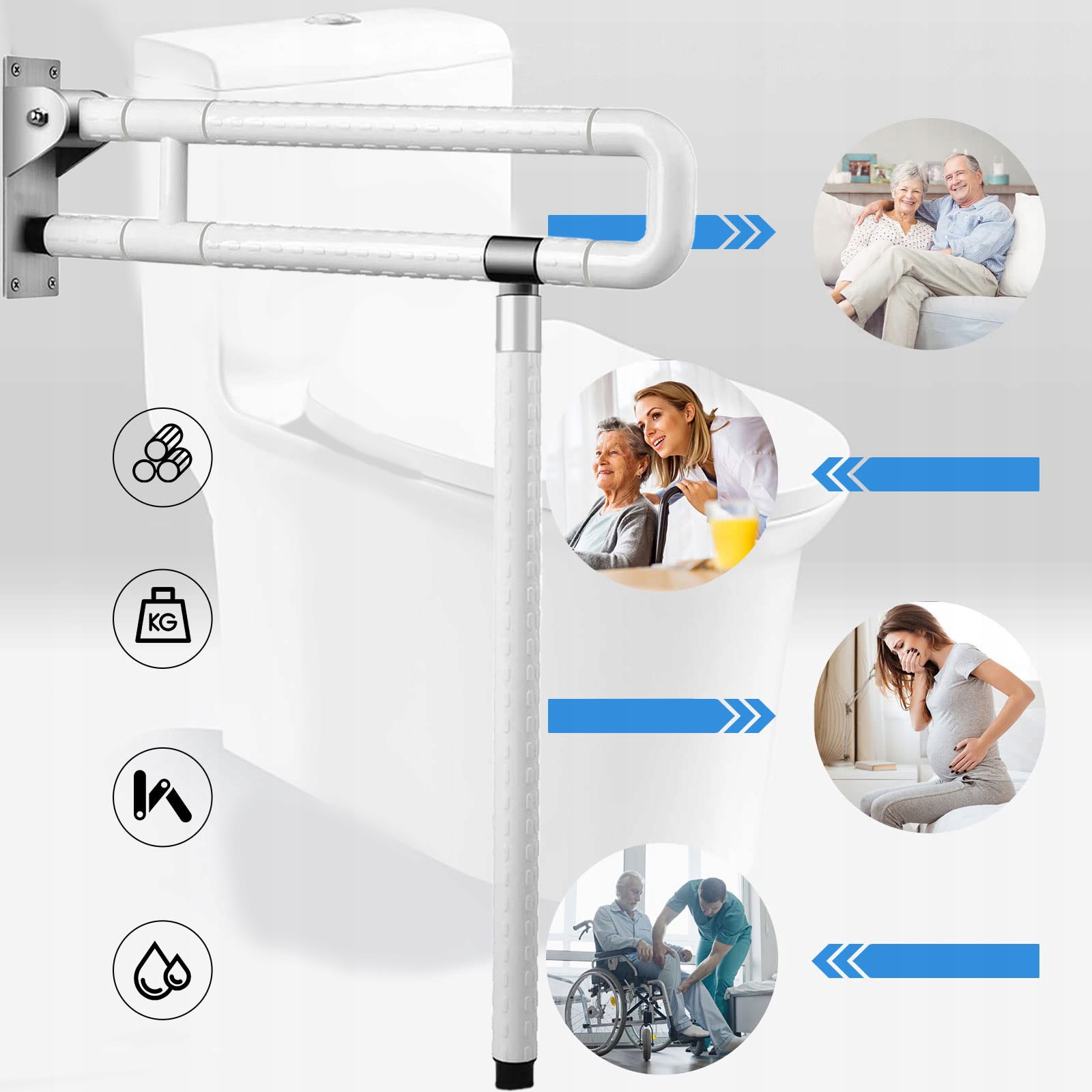 💎 ПІДХОДИТЬ ДЛЯ КОЖНОГО: ця ручка забезпечує вагітним жінкам, людям похилого віку та людям з обмеженими можливостями безпечну та надійну підтримку у ванній кімнаті. Ця надзвичайно стійка ручка ідеально підходить як додаткова ручка біля раковини чи унітазу.
