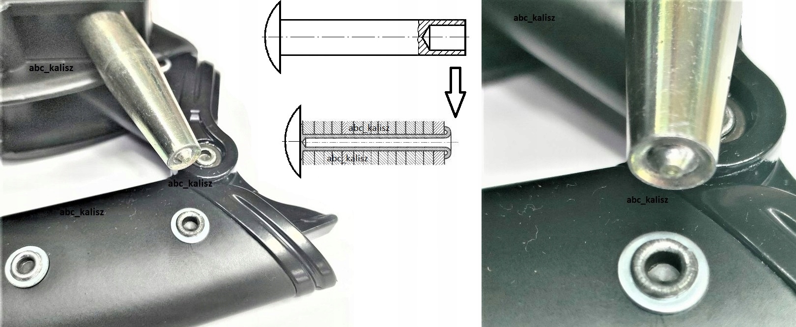 Наведену вище операцію слід виконати за допомогою заклепки. пристрій.
