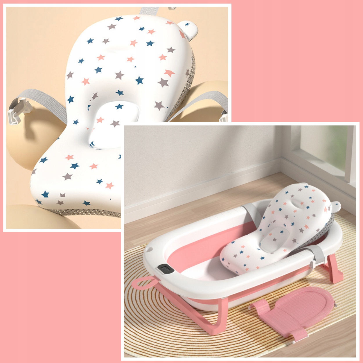 Подушка для купання дитини виготовлена з матеріалів, які не накопичують бактерії, що робить її гігієнічною. Використовується для купання новонароджених і немовлят, забезпечуючи безпеку і комфорт. Матеріал м'який і приємний на дотик, легко чиститься і швидко сохне. Подушка легко складається і має регульовані гачки, що дозволяє адаптувати її до будь-якого типу ванни.