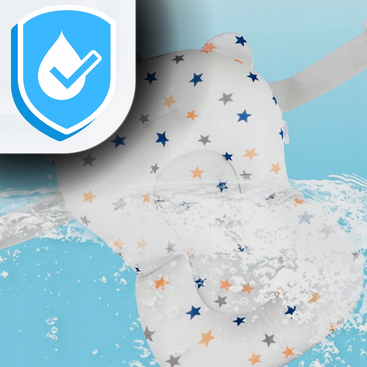 Подушка для купання дитини виготовлена з матеріалів, які не накопичують бактерії, що робить її гігієнічною. Використовується для купання новонароджених і немовлят, забезпечуючи безпеку і комфорт. Матеріал м'який і приємний на дотик, легко чиститься і швидко сохне. Подушка легко складається і має регульовані гачки, що дозволяє адаптувати її до будь-якого типу ванни.