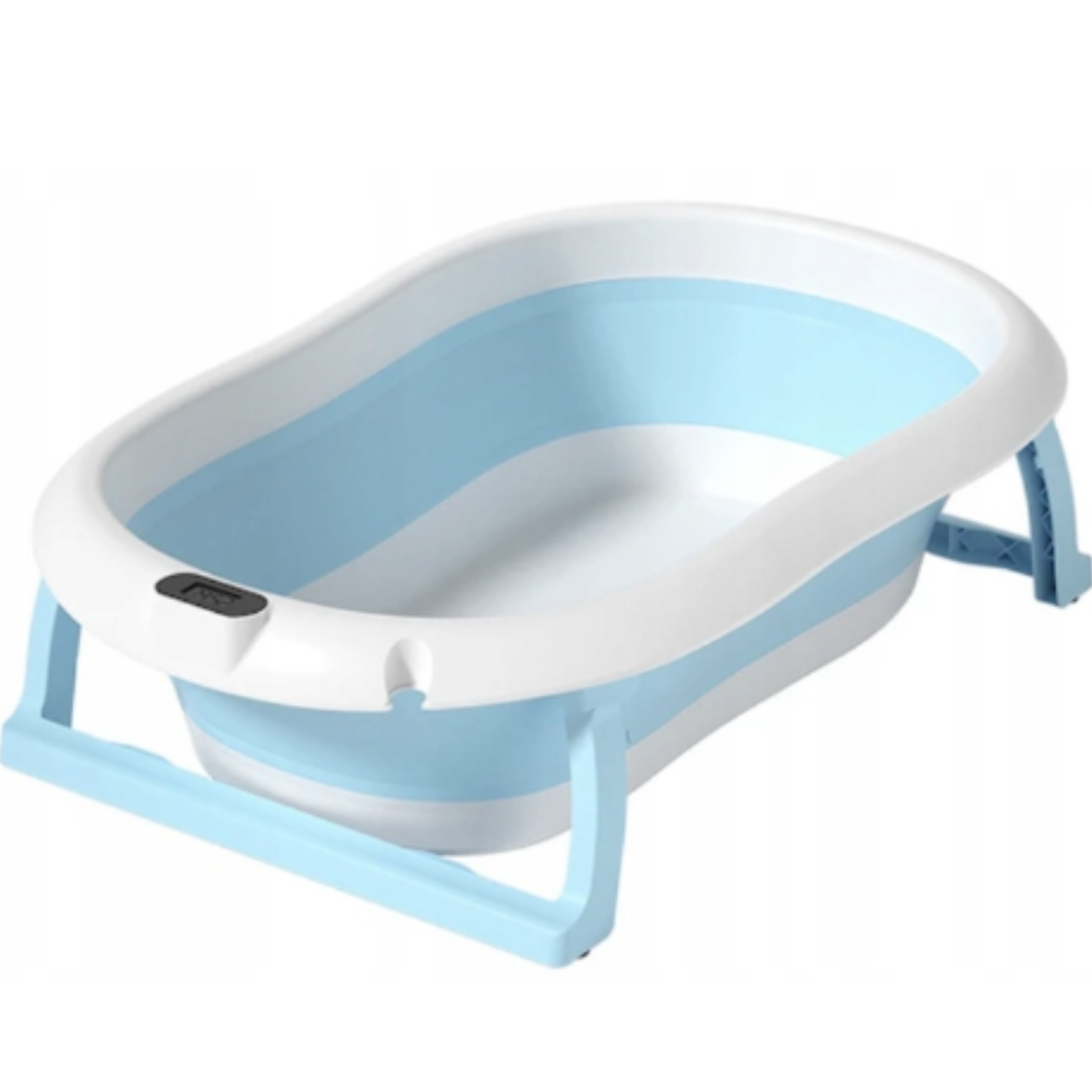СКЛАДНА СИЛІКОНОВА ДИТЯЧА ВАННА ДЛЯ ДІТЕЙ LCD ТЕРМОМЕТР ПОДУШКА CE СИНЯ