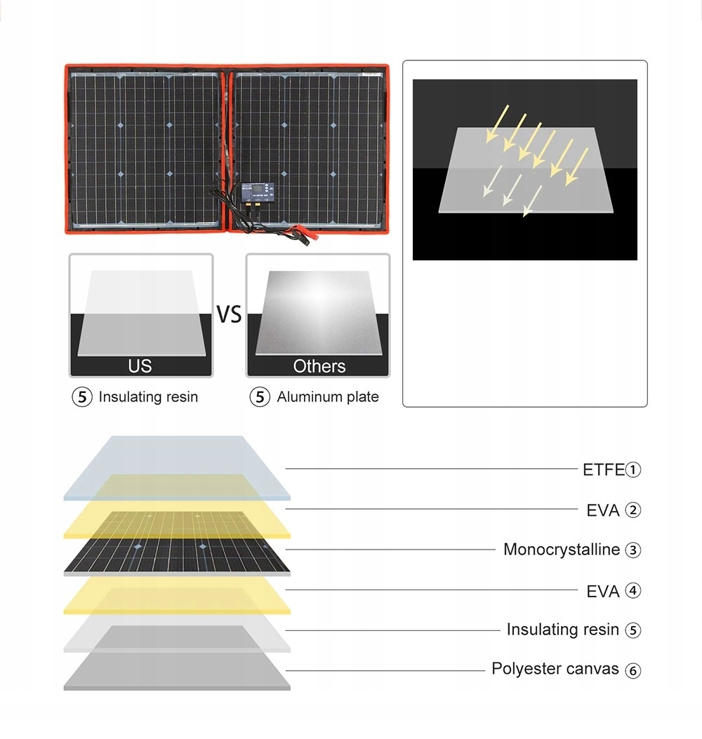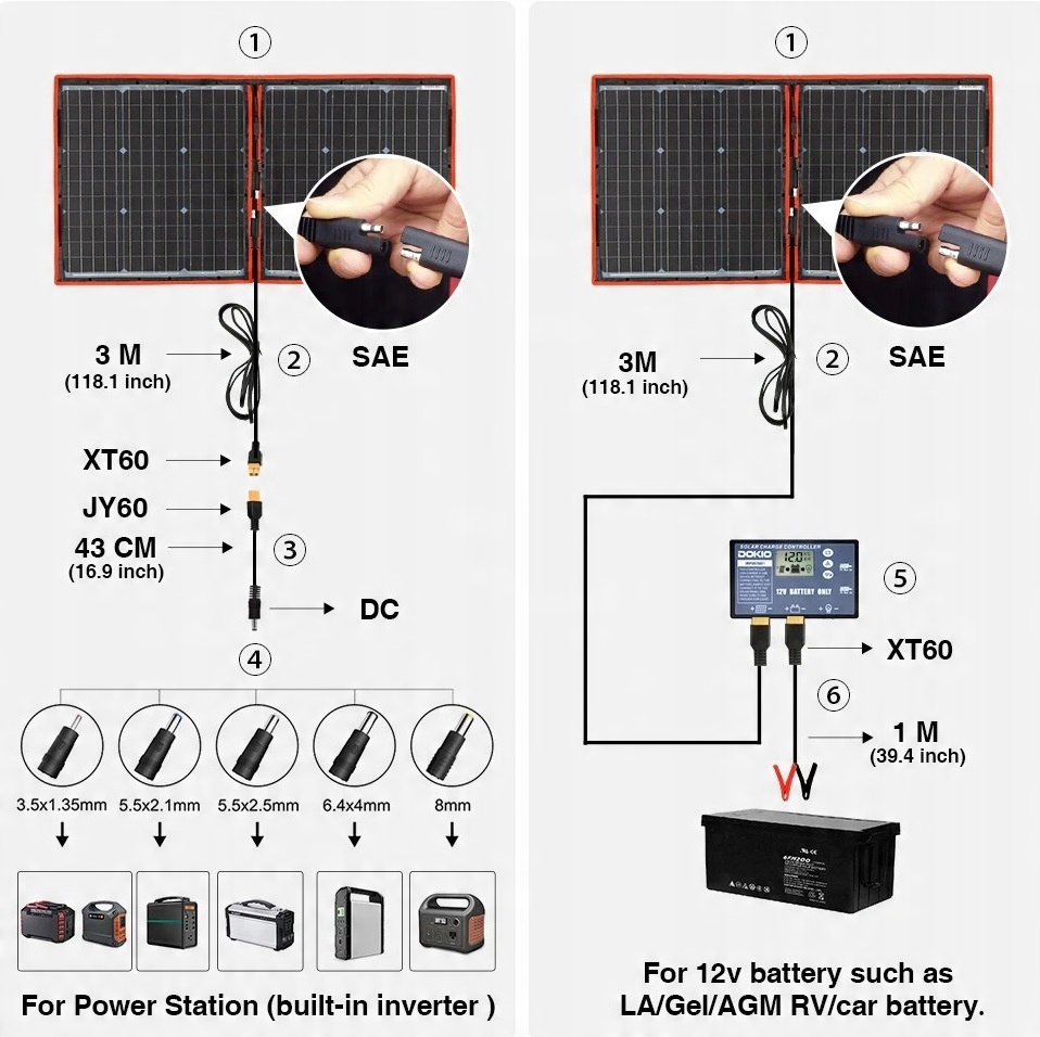 Сонячну панель можна скласти, щоб заощадити місце! Незалежно від того, чи є вона в рюкзаку, сумці для велосипеда, машині чи мобільному будинку: ви можете взяти це мобільна електростанція з вами всюди.