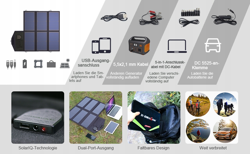 x-драконовий складний сонячний панель 40 Вт сонячного зарядного пристрою складання сонячної панелі USB (5 В USB + 18 В постійного струму) до кривошипного радіо, якщо це необхідно, ноутбук, акумулятор, банк живлення, планшет, смартфони, подорожі, надзвичайна ситуація < / H1> - ▶ Ексклюзивна технологія Solariq: автоматично регулює струм та напругу для досягнення максимальної продуктивності. При прямому сонячному світлі він забезпечує найшвидше електроенергію до 2,8 a