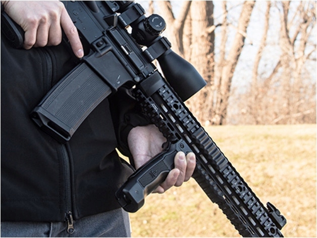 Усередині рукоятки є складні ніжки, завдяки яким можна легко і швидко трансформувати тактичну рукоятку в функціональну сошку висотою 8,4". Ніжки висуваються автоматично після натискання подвійної кнопки -стороння кнопка.