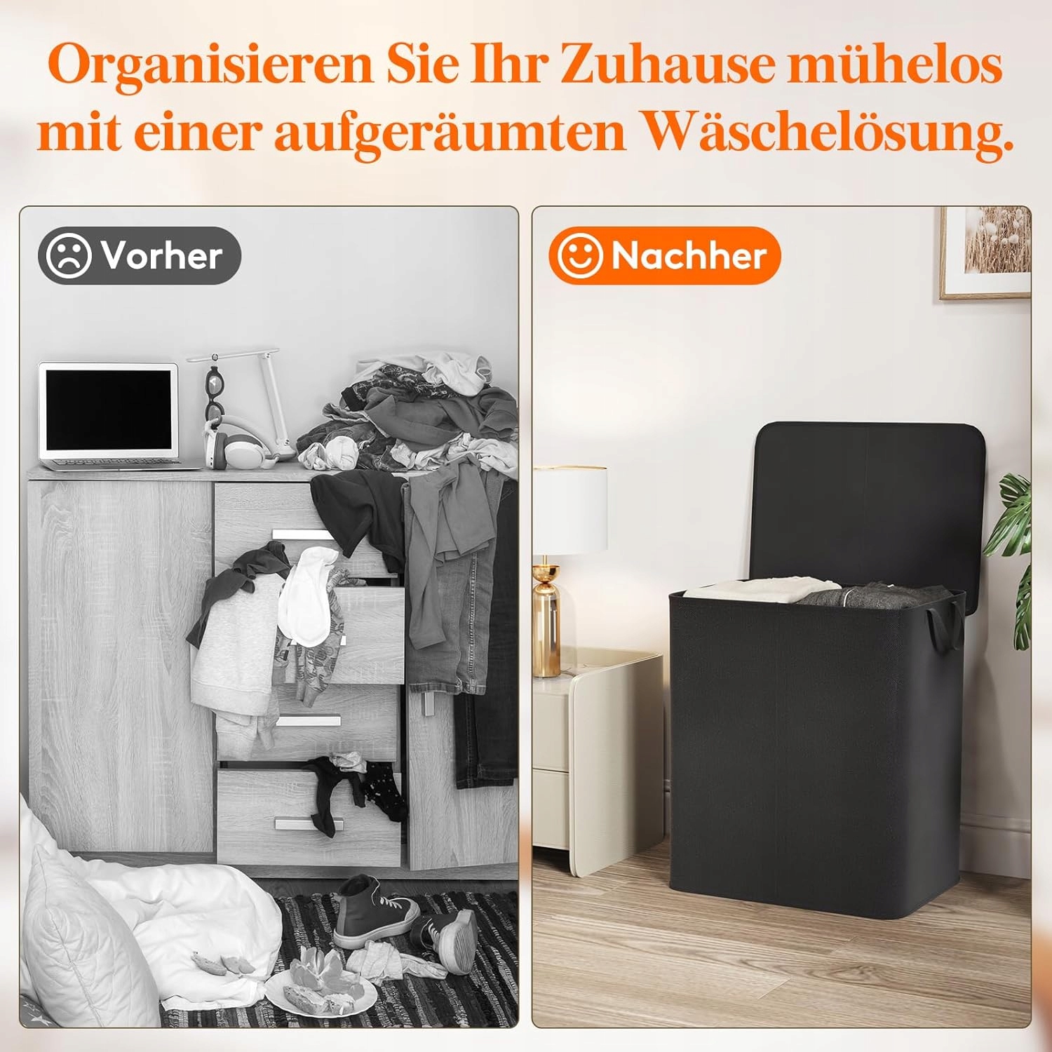 Багато простору з двома відділеннями: завдяки розмірам 50 см x 35 см x 60 см і великій ємності 105 л, наш великий резервуар для пляшок. Цей тримач для депозитних пляшок має унікальний дизайн із двома відділеннями, які забезпечують достатньо місця для депозитних пляшок для всієї родини. Це дозволяє зручно зберігати багаторазові пляшки, банки та склянки, підтримує екологічну переробку та сприяє захисту навколишнього середовища.