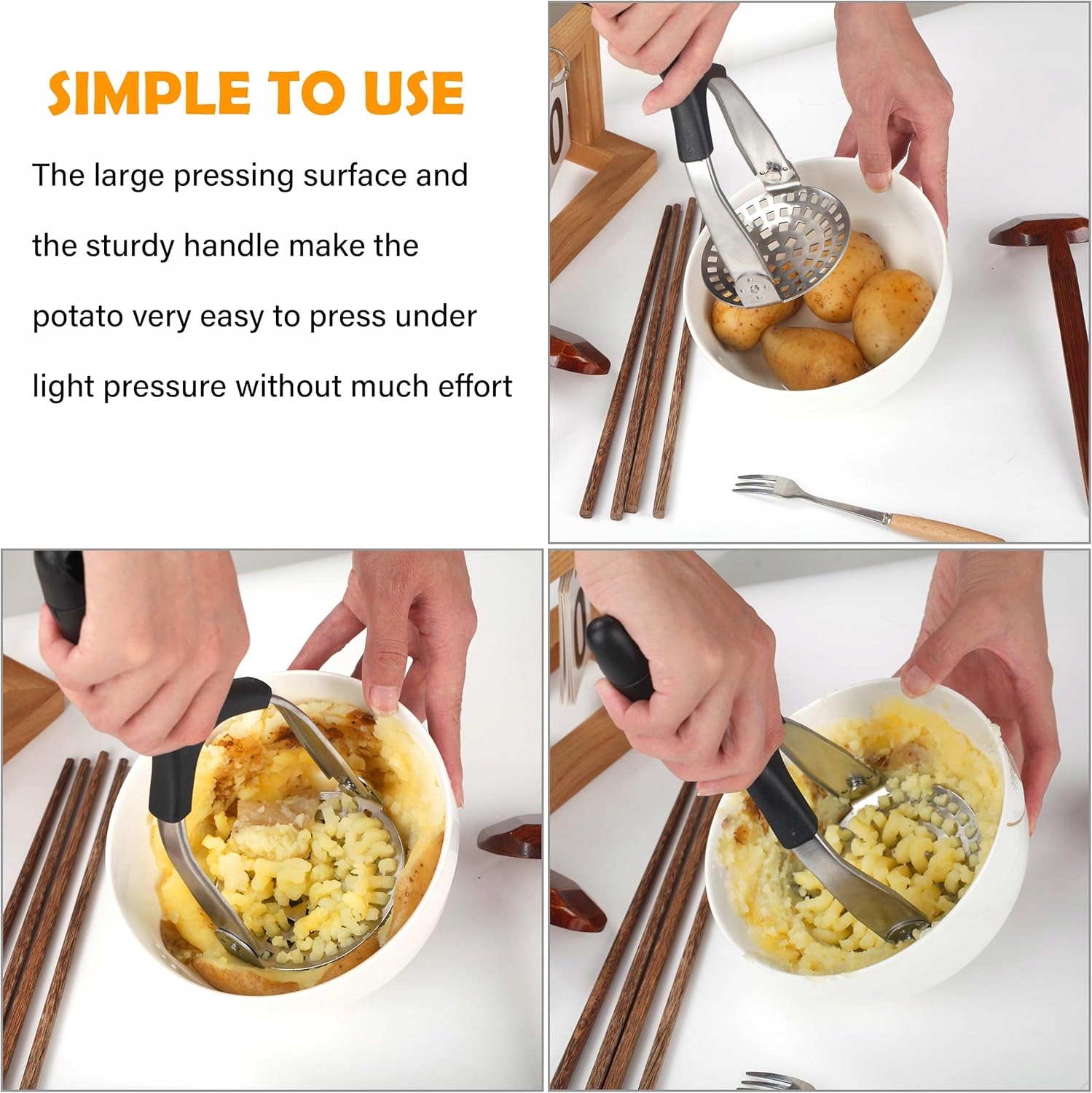 【Картопледавка преміум-класу】 Цей інструмент допоможе вам швидко потовкти картоплю, овочі та фрукти, він дуже простий і зручний у використанні. Він призначений для легкого та ефективного перетирання інгредієнтів. Просто помістіть інгредієнти в інструмент і злегка натисніть, щоб нарізати їх до потрібного розміру.
