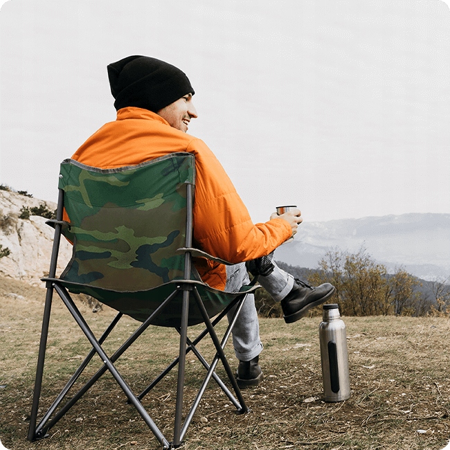 Крісло постачається з практичним чохлом із ручкою, що полегшує його перенесення. Завдяки цьому ви легко можете брати крісло з собою в кожну подорож або на кожну рибалку.