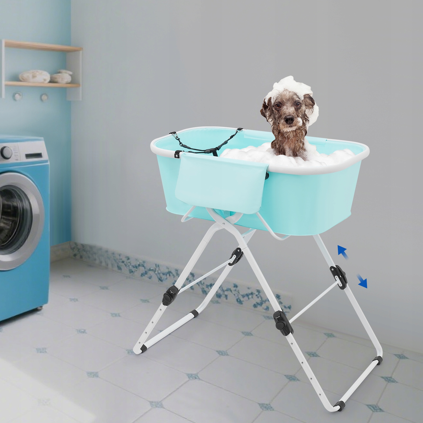 Складна ванна для домашніх тварин з регульованою висотою, синя портативна ванна для собак