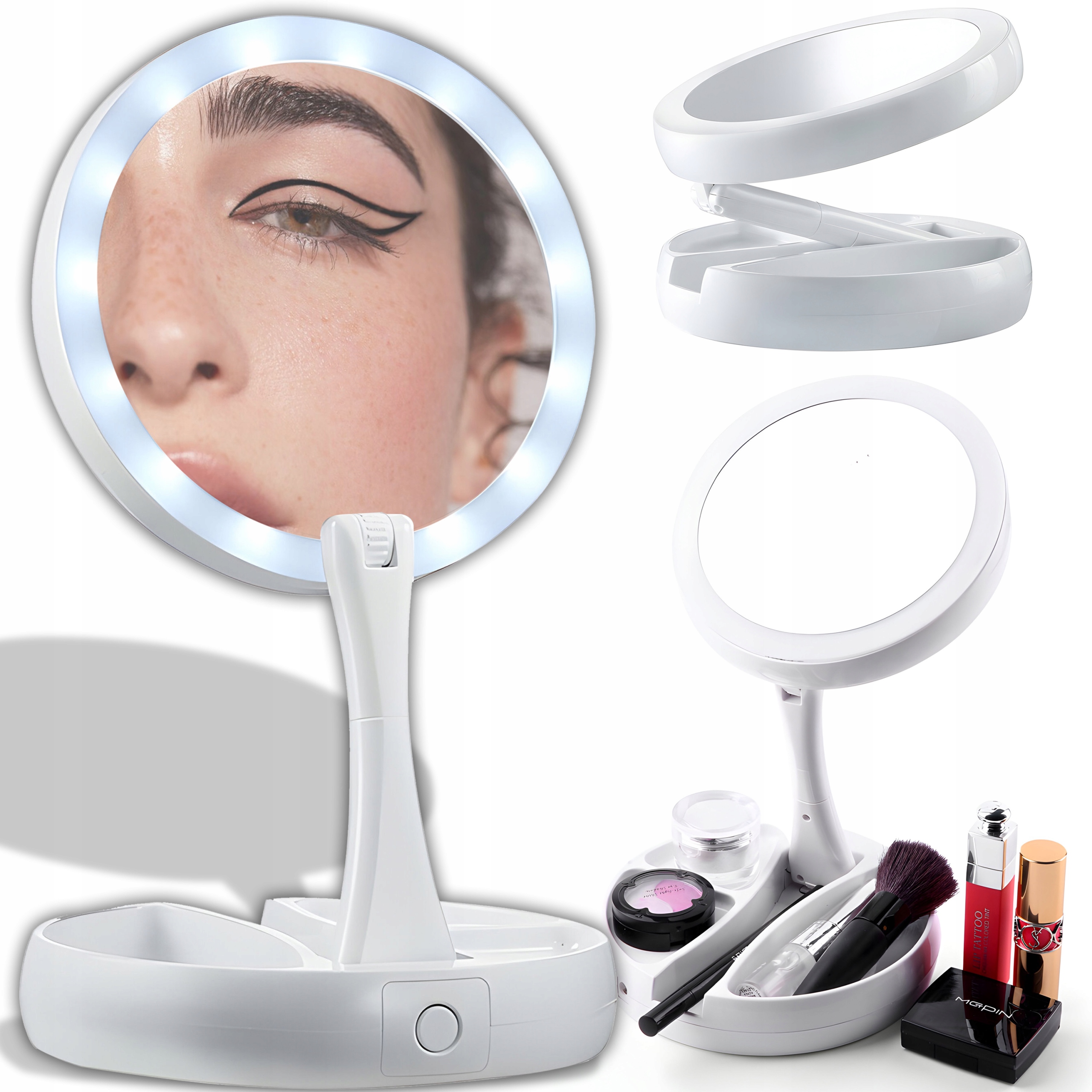 ДВОСТОРОННЕ КОСМЕТИЧНЕ ДЗЕРКАЛО ДЛЯ МАКІЯЖУ, ЗБІЛЬШУВАННЯ, ПІДСВІТЛЕННЯ