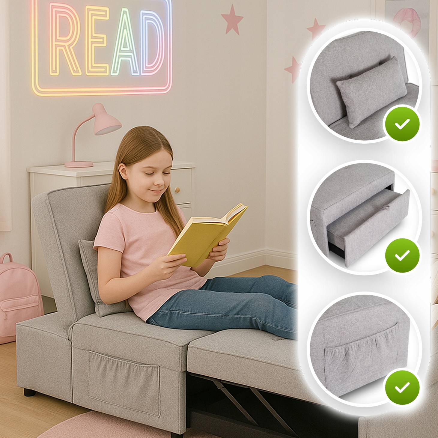 Ідеальне крісло як ліжко для гостя , місце дрімоти в домашньому офісі , або комфортне розслаблення з книгою або ноутбуком . - Просто потягніть ручку, розміщену спереду, так що нижня частина ковзає плавно і без особливих зусиль.