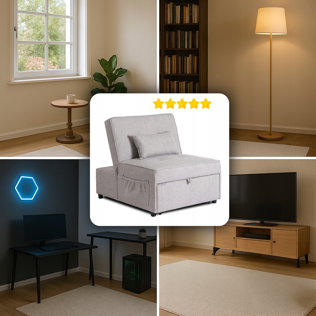 Святкове крісло - це рішення для тих, хто цінує функціональність, сучасний дизайн та комфорт використання в одній меблі. Його дизайн дозволяє швидко перетворити його з зручного крісла на диван або ліжко - ідеально підходить для відпочинку в будь -який час доби.