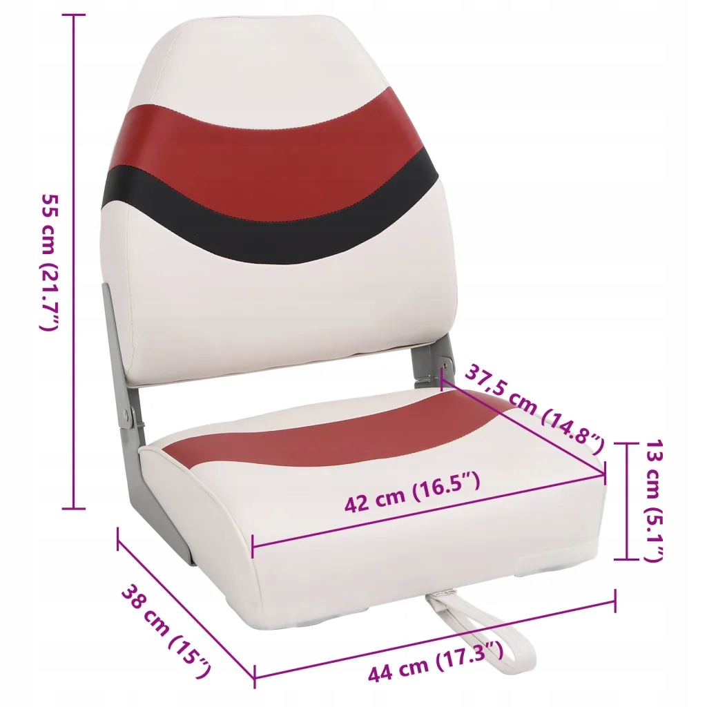 Складне сидіння для човна з високою спинкою, водонепроникне, біло-червоно-чорне, 44x38x55 см
