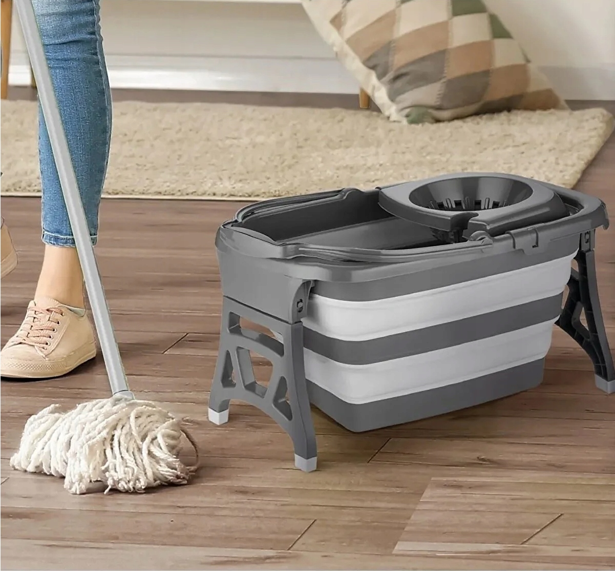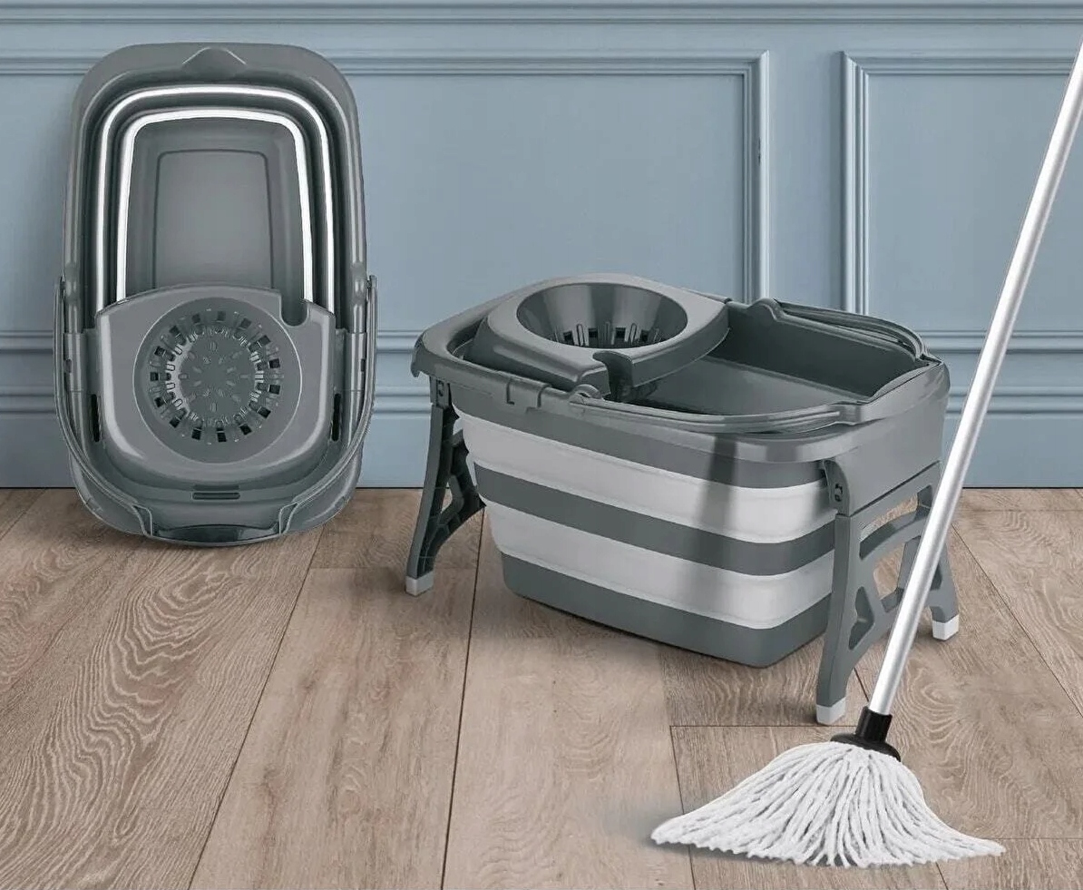 СКЛАДНЕ СИЛІКОНОВЕ ВІДРО ЗІ ШВАБРОЮ