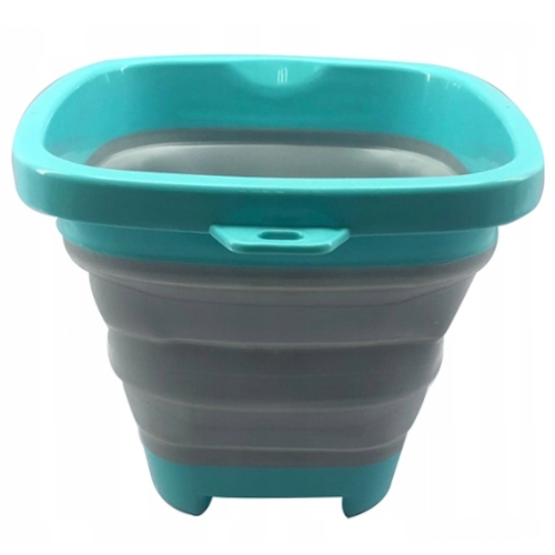 Стінки відра виготовлені з товстого міцного силікону, який можна скласти гармошкою. Верх, низ і ручка пластикові.
