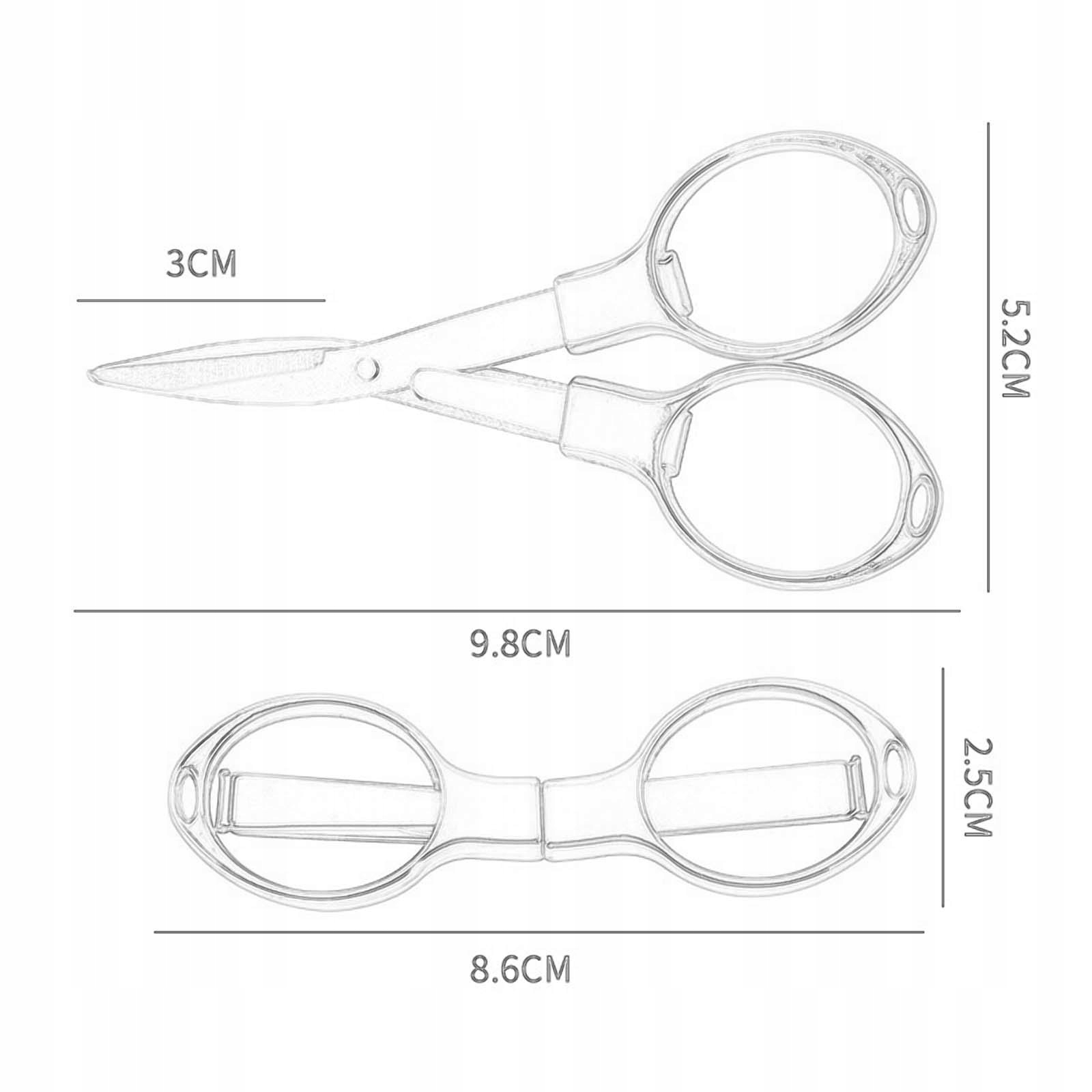 [Правильний розмір] Складні ножиці з нержавіючої сталі мають розміри після збільшення 5,2 см х 9,8 см / 2,05 дюйма x 3,86 дюйма, після складання вони мають розміри 8,6 см х 2,5 см / 3,39 дюйма x 0,98 КАЛА.