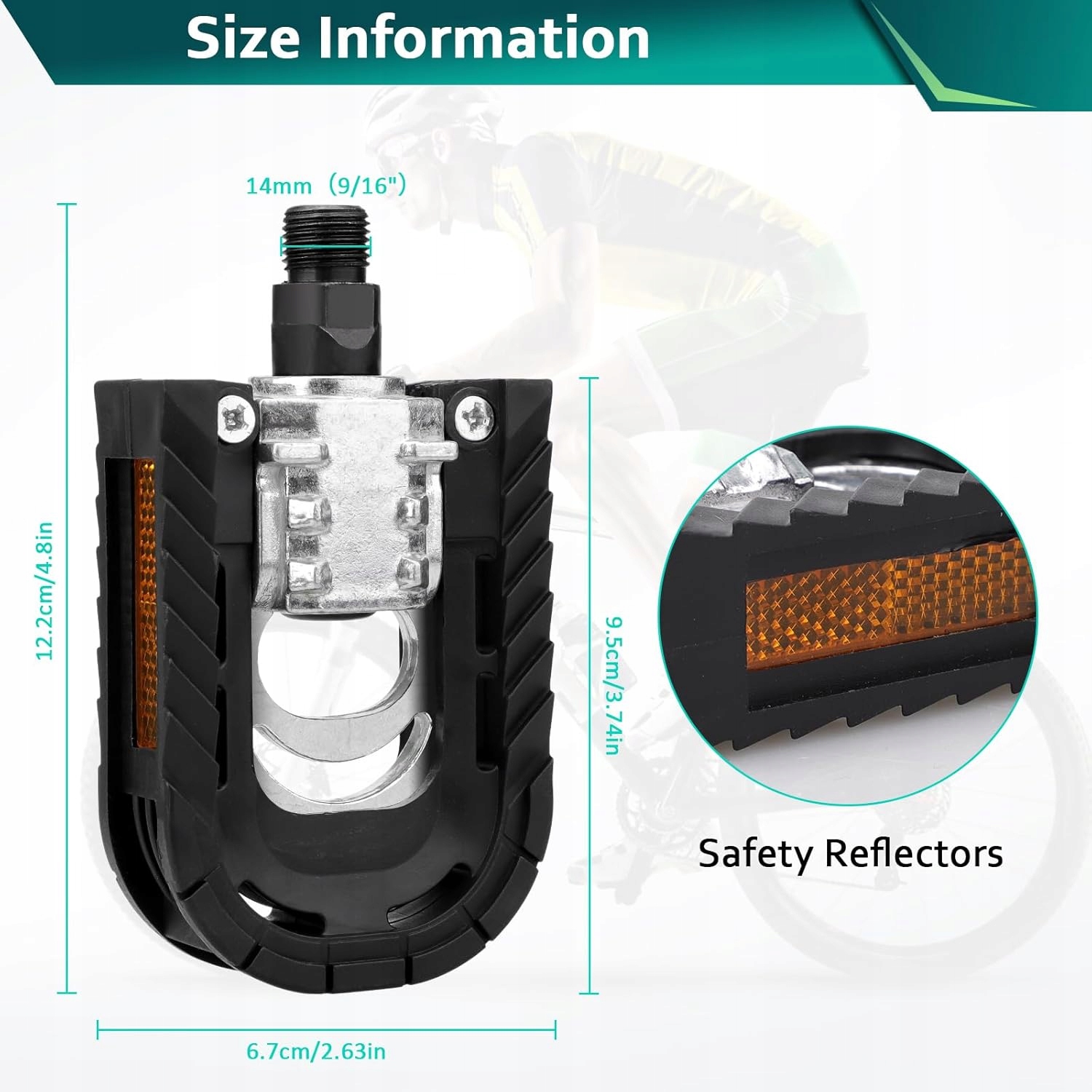 подбайте про свою безпеку в дорозі! Педалі оснащені світловідбиваючими елементами, які покращують видимість велосипедиста після темряви та в умовах поганої видимості.