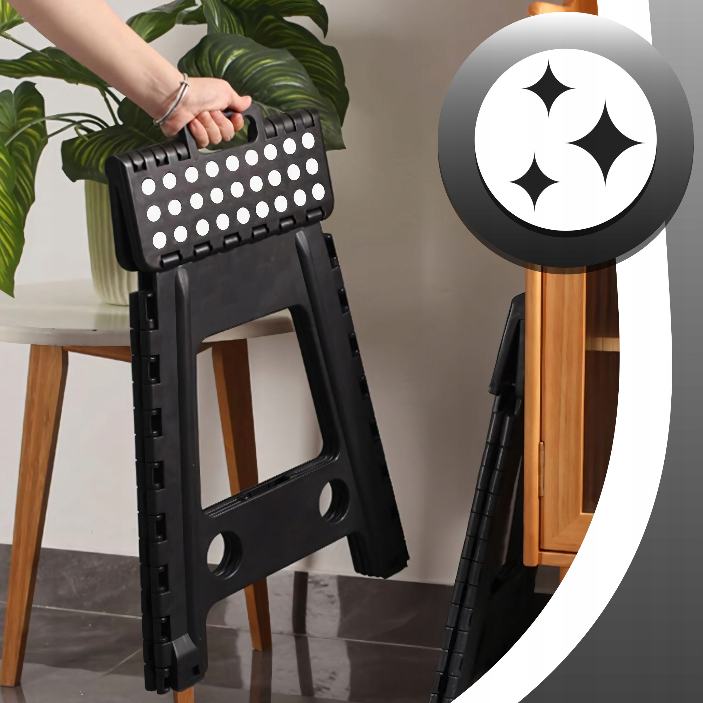 ✍️ Складний табурет ☺️ Ніжки проти ковзання ☀️ Зручна ручка для перенесення ✔️ Стійка конструкція ✏️ Міцний матеріал ABS ✉️ Економія місця ♥️ Ідеально підходить для дому, майстерні та саду ♠️ Швидке складання та розкладання ♣️ Сучасний дизайн ⭐ Сертифікат CE