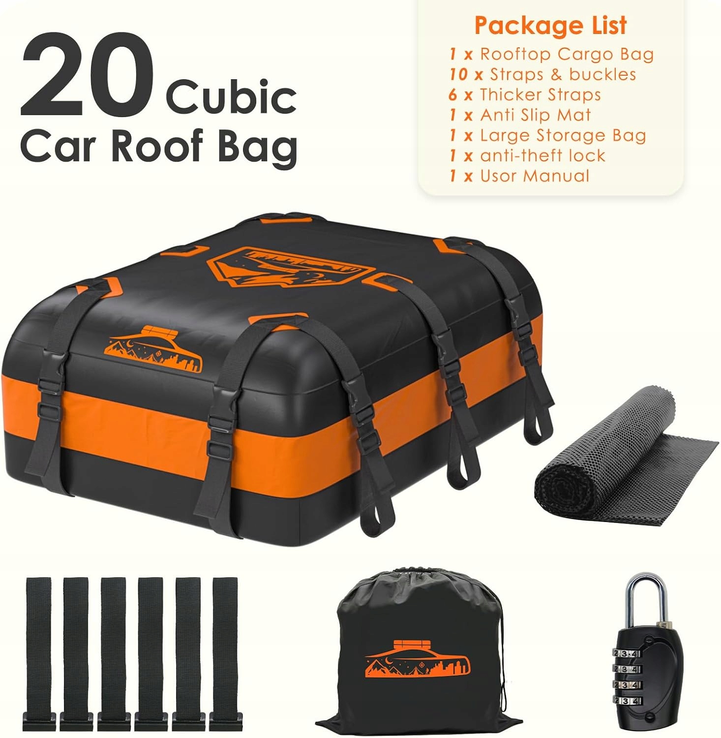 ✅✅✅✅✅✅️✅Багажник на дах Rymopuey 20 Cu.Ft/566 л, водонепроникний автомобільний дах 1000D, помаранчевий, багажник на дах із килимком проти ковзання та 10 ременями, багажник на дах автомобіля з багажником або без