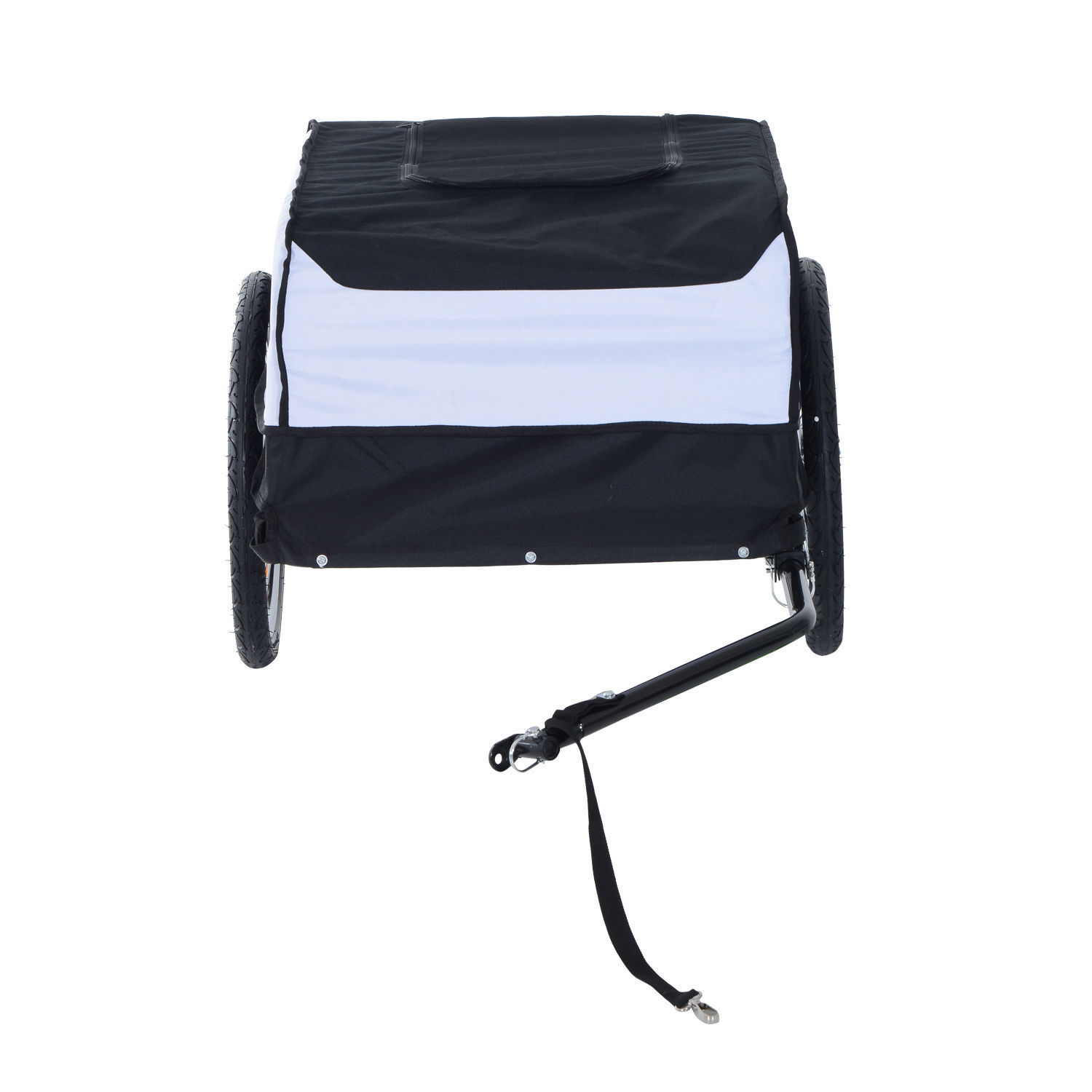 Практичний причіп для транспортування велосипедів полегшить вашу подорож. Ви можете зручно перевозити більші та важкі речі, що зробить вашу велосипедну подорож ще приємнішою! Велосипедний причіп також ідеально підходить для покупок, ви можете легко перевозити, наприклад, коробки або пляшки з напоями. Причіп пересувається на 20-дюймових колесах, які накачуються повітрям. Колеса можна зняти, щоб заощадити місце.