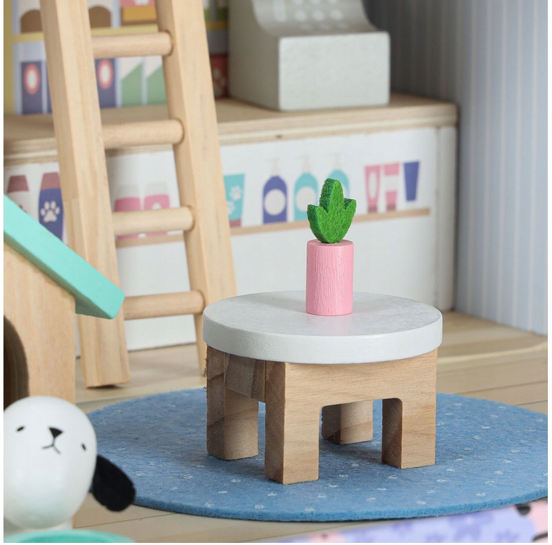 Дерев'яний ляльковий будиночок з меблями, статуетками та аксесуарами у валізі - Pet Spa