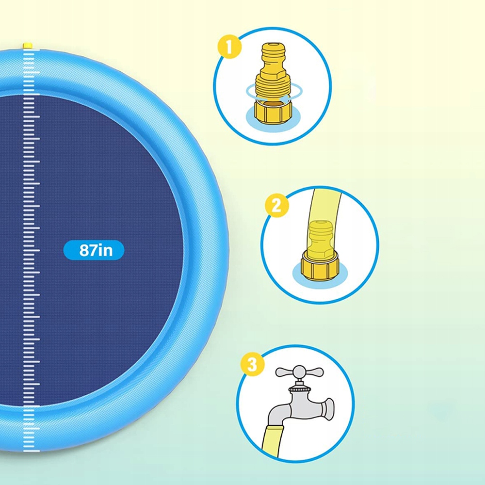 🧊Просто підключіть спрей-мат до садового шланга або Трубу ПВХ і відрегулюйте тиск води, щоб зменшити або збільшити висоту розпилення, і веселощі можуть початися. Зауважте, що тиск води може відрізнятися від дому до дому.