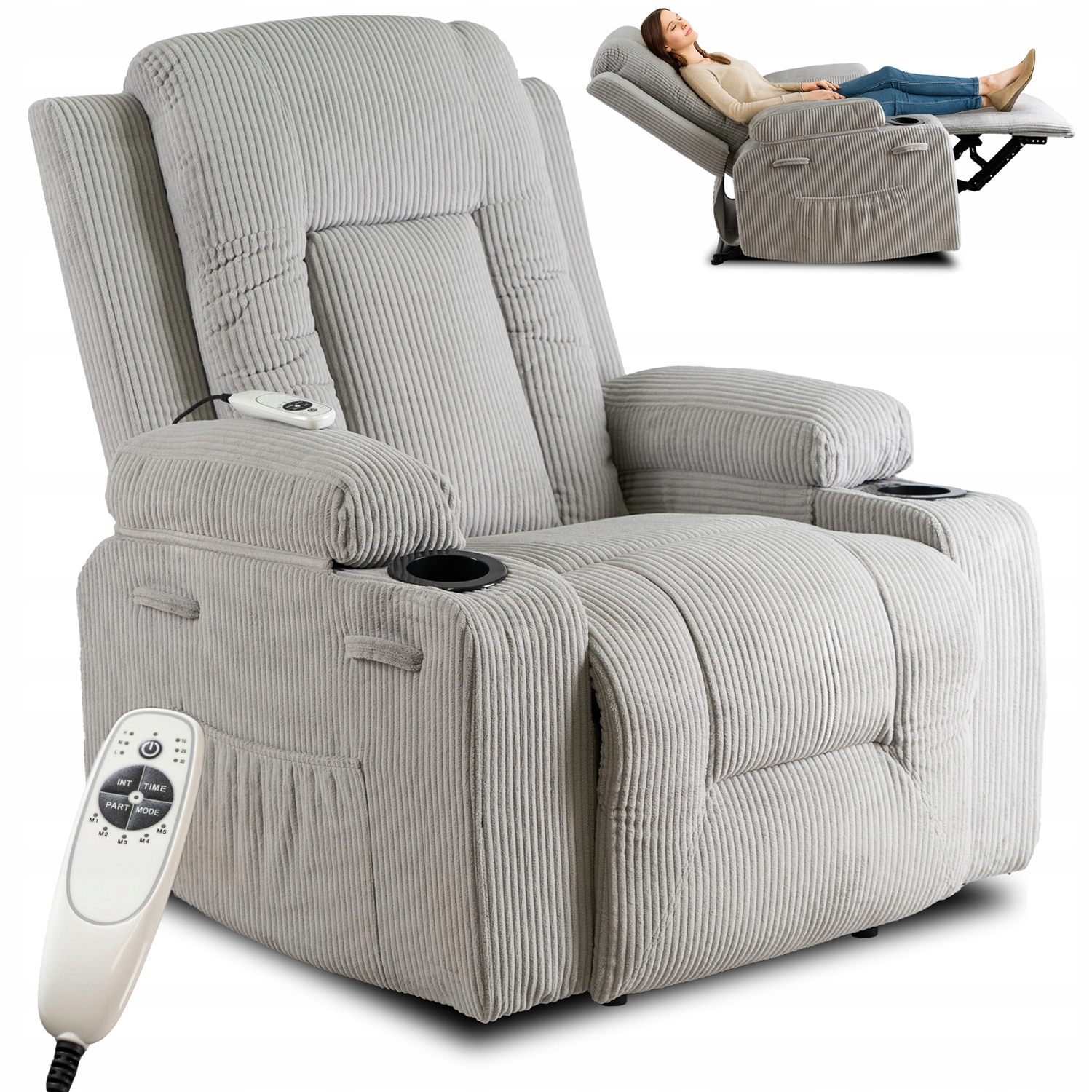 ✨ коробка 2 крісла - це ідеальне поєднання сучасного дизайну з комфортом. Це розгортається на взаємне положення і має контрольовану пілотну функцію масажу . Він має товстий шар оббивної піни, тому вона м’яка і сидить або лежить в ньому справді комфортно. Крісло покрите високоякісною корпусною тканиною в сірому кольорі, що додає елегантності.