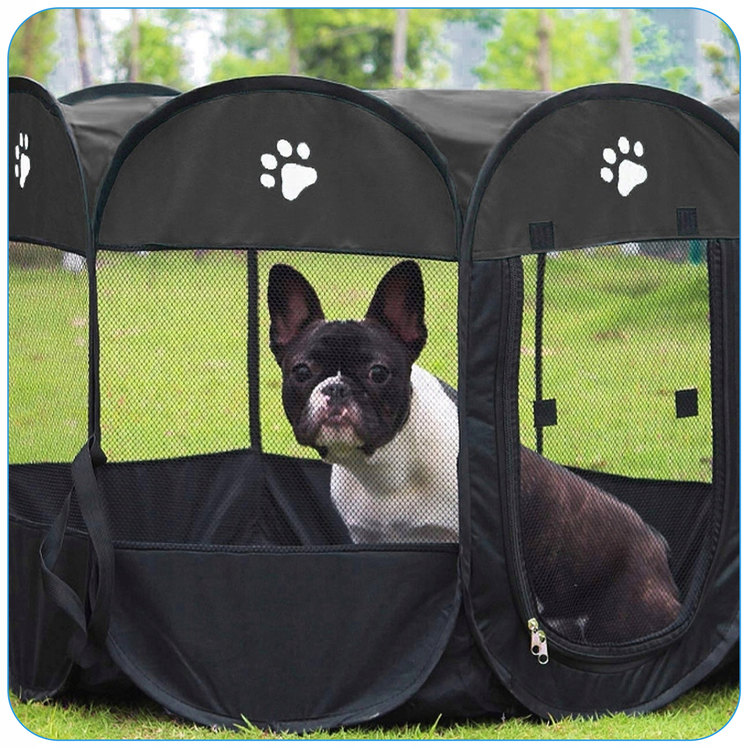 ✅ Вхід закривається на блискавку: Забезпечує додаткову безпеку та контроль над доступом до манежу, що особливо важливо для енергійних собак.