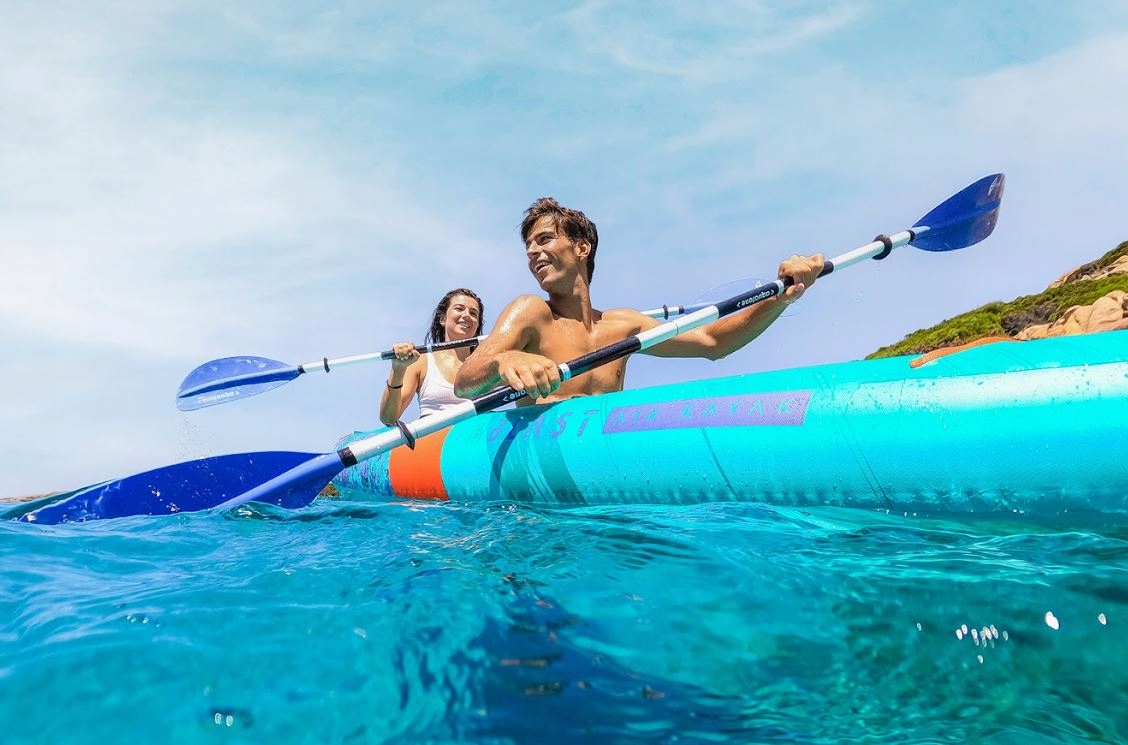 Лопаті весла встановлені на алюмінієвий стрижень, естетично покритий порошковою білою фарбою, з ПВХ-гільзою в зоні захоплення.