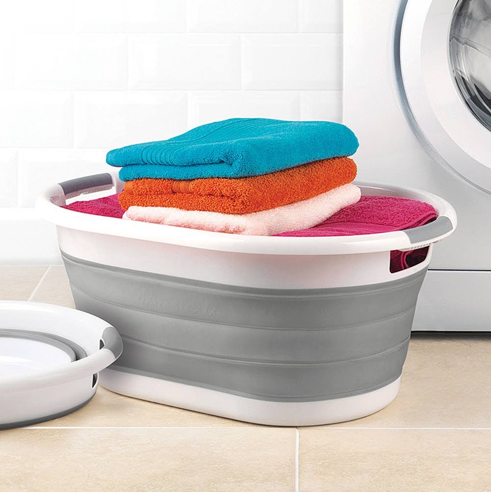 Контейнер швидко складається та розкладається. Щоб зібрати, поставте миску на поверхню та притисніть. Ви можете миттєво сховати його за пральною машиною чи шафою.