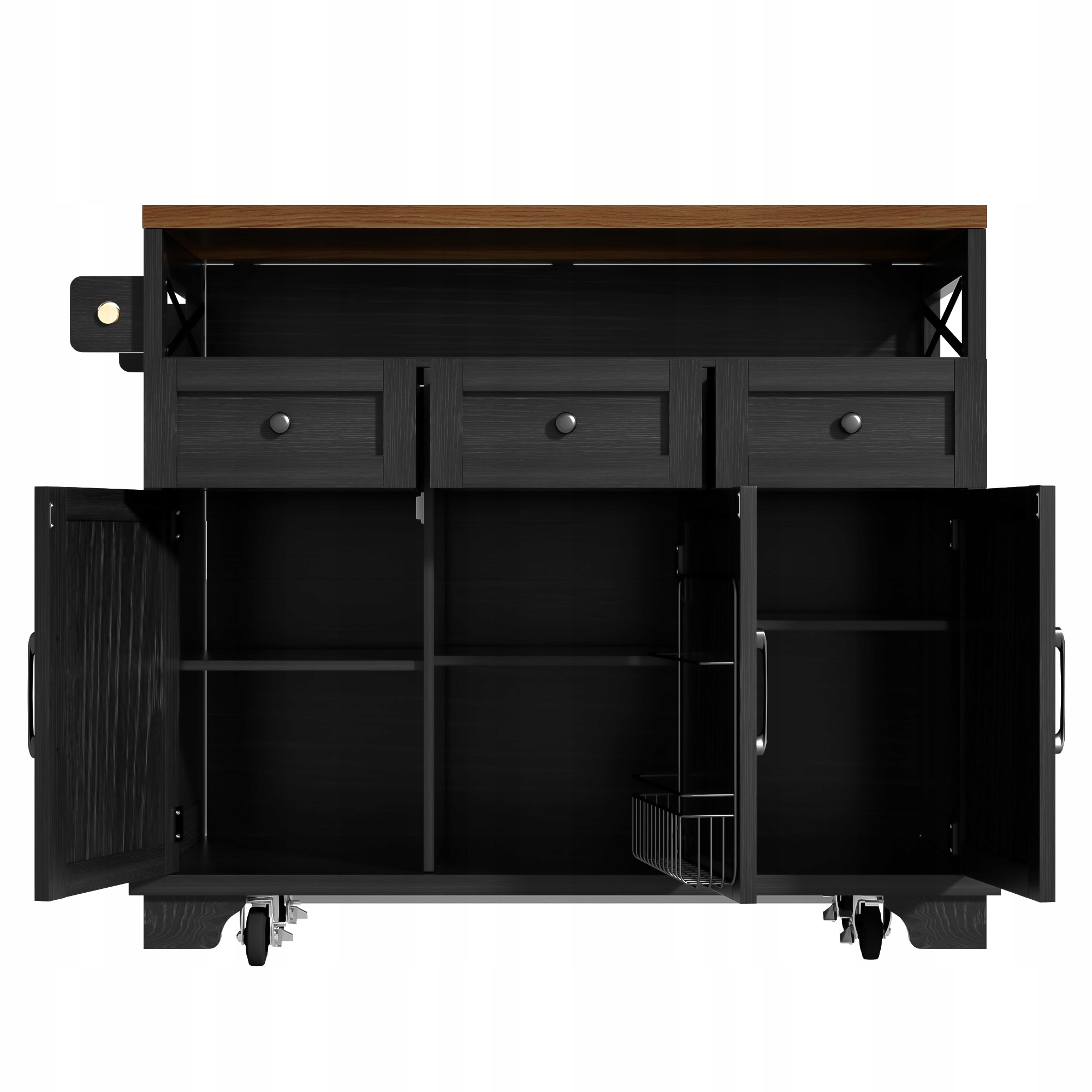 СКЛАДНИЙ КУХОННИЙ ОСТРІВ НА КОЛІСЦЯХ З РЕГУЛЬОВАНИМИ ПОЛИЦЯМИ, ЧОРНИЙ
