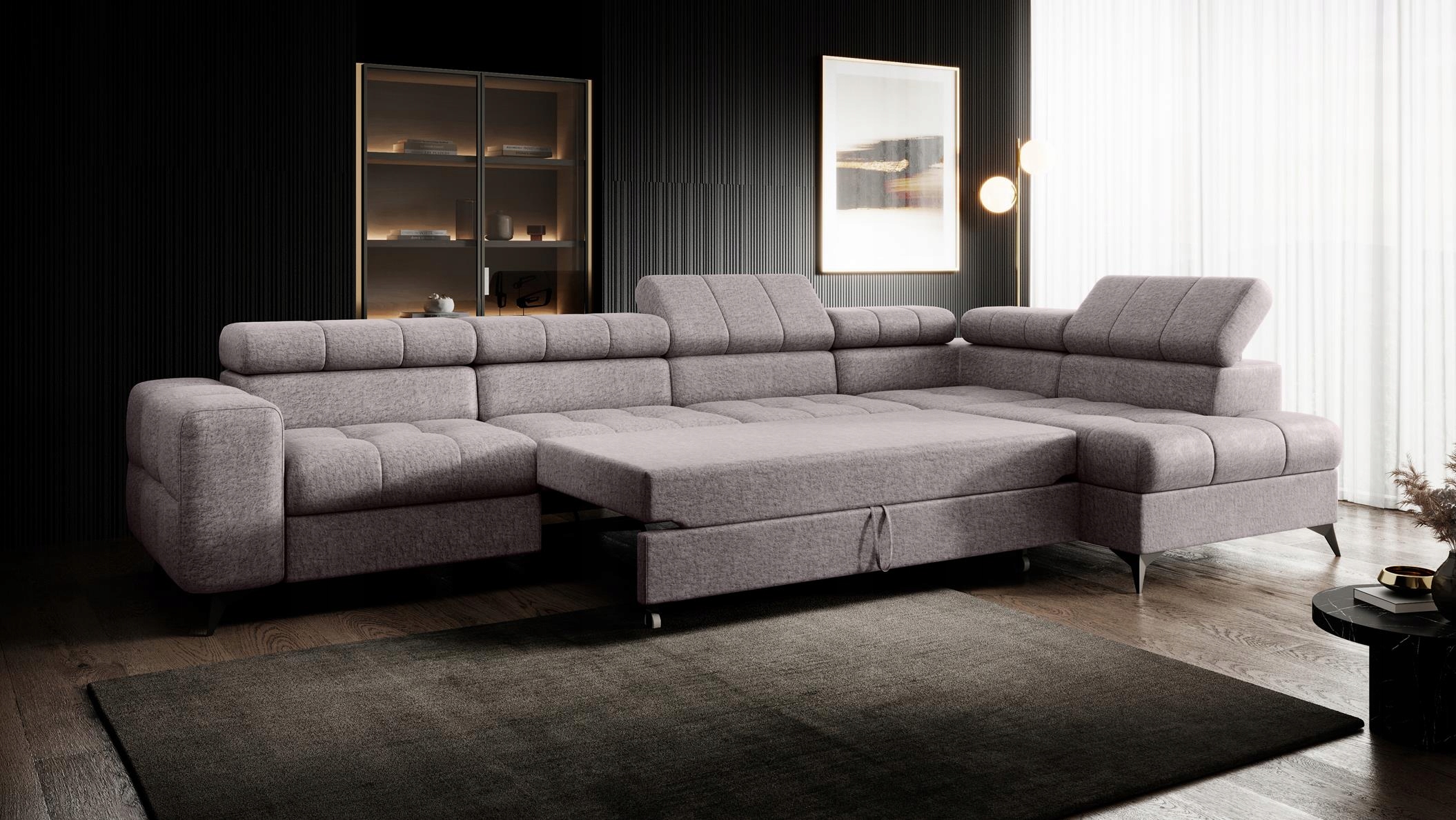 стильний та сучасний кутовий пудинг з регульованими головами та функцією сну.