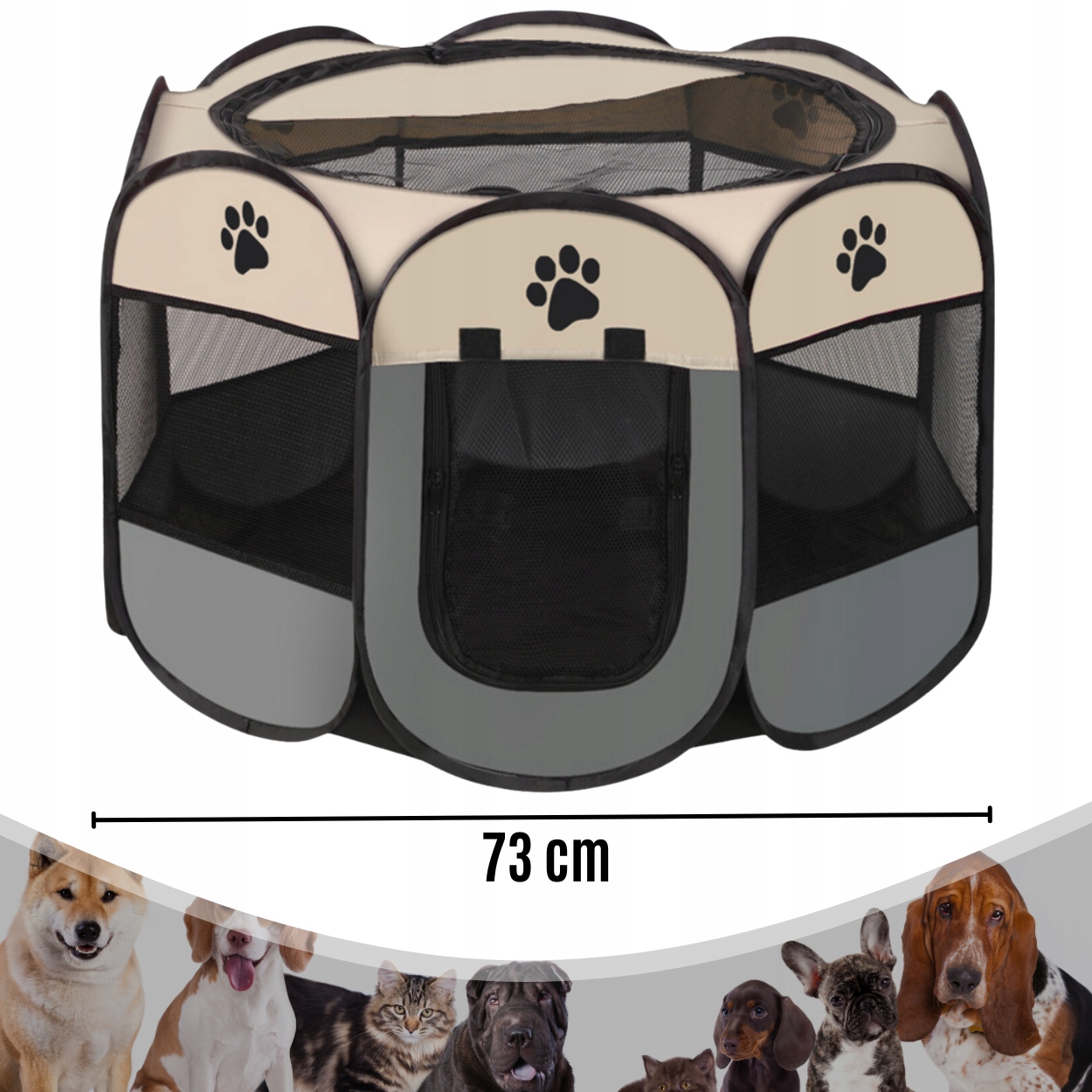 Ось унікальний складаний текстильний манеж у формі восьмикутника, створений разом із вашою собакою, цуценям, котом чи іншою маленькою тваринкою на увазі. Наш манеж є ідеальним рішенням для кожного власника домашньої тварини, якому потрібно забезпечити безпечне місце для свого улюбленця.