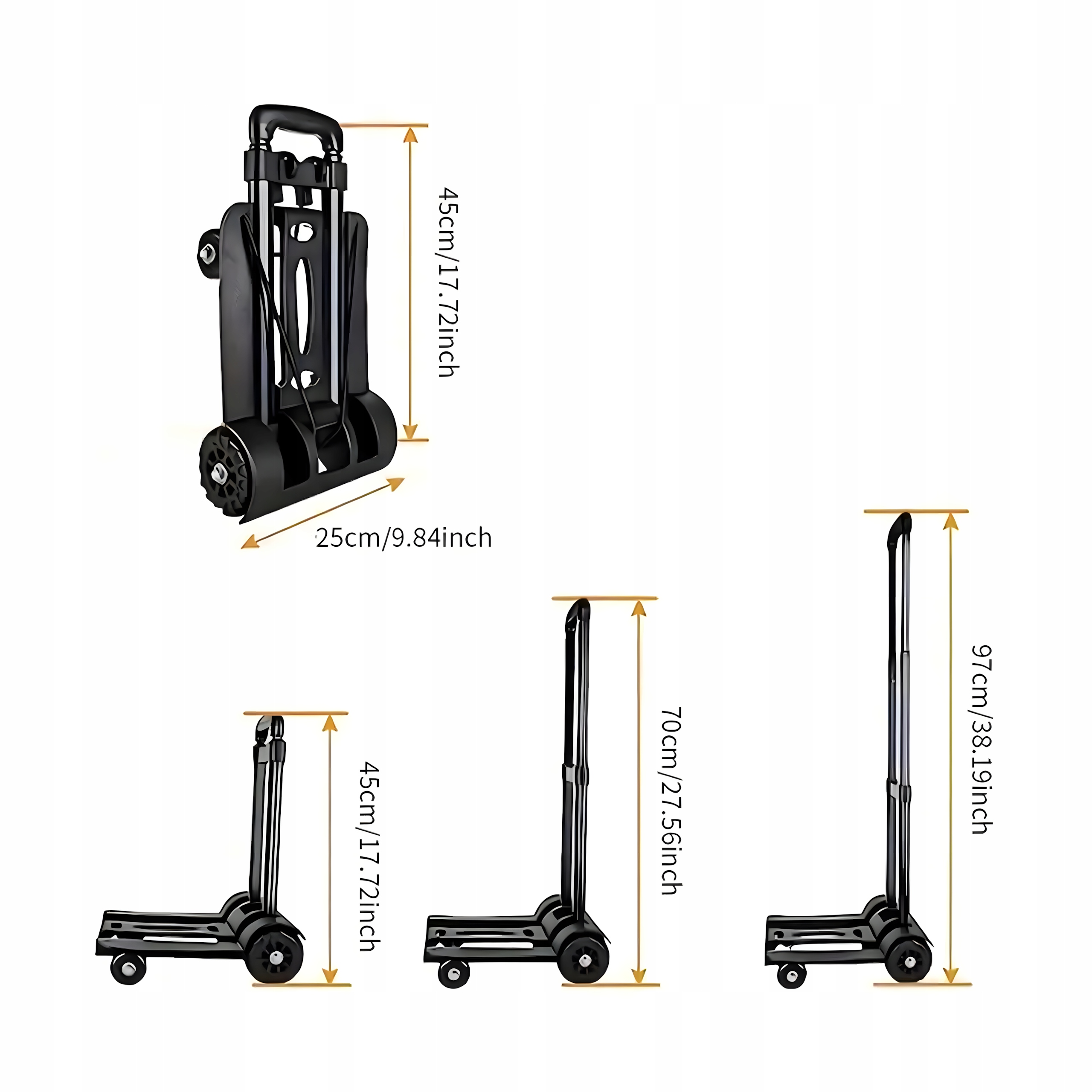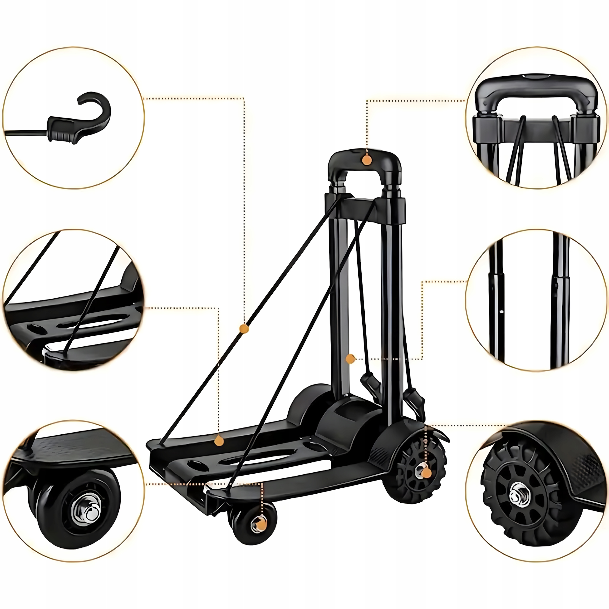 Транспортний візок виготовлений з високоякісних матеріалів. Розширена телескопічна ручка виготовлена з алюмінієвих профілів, а структура платформи - це високоякісний пластик з вуглецевим виглядом. Замовте зараз і насолоджуйтесь зручністю транспорту щодня! 🚛